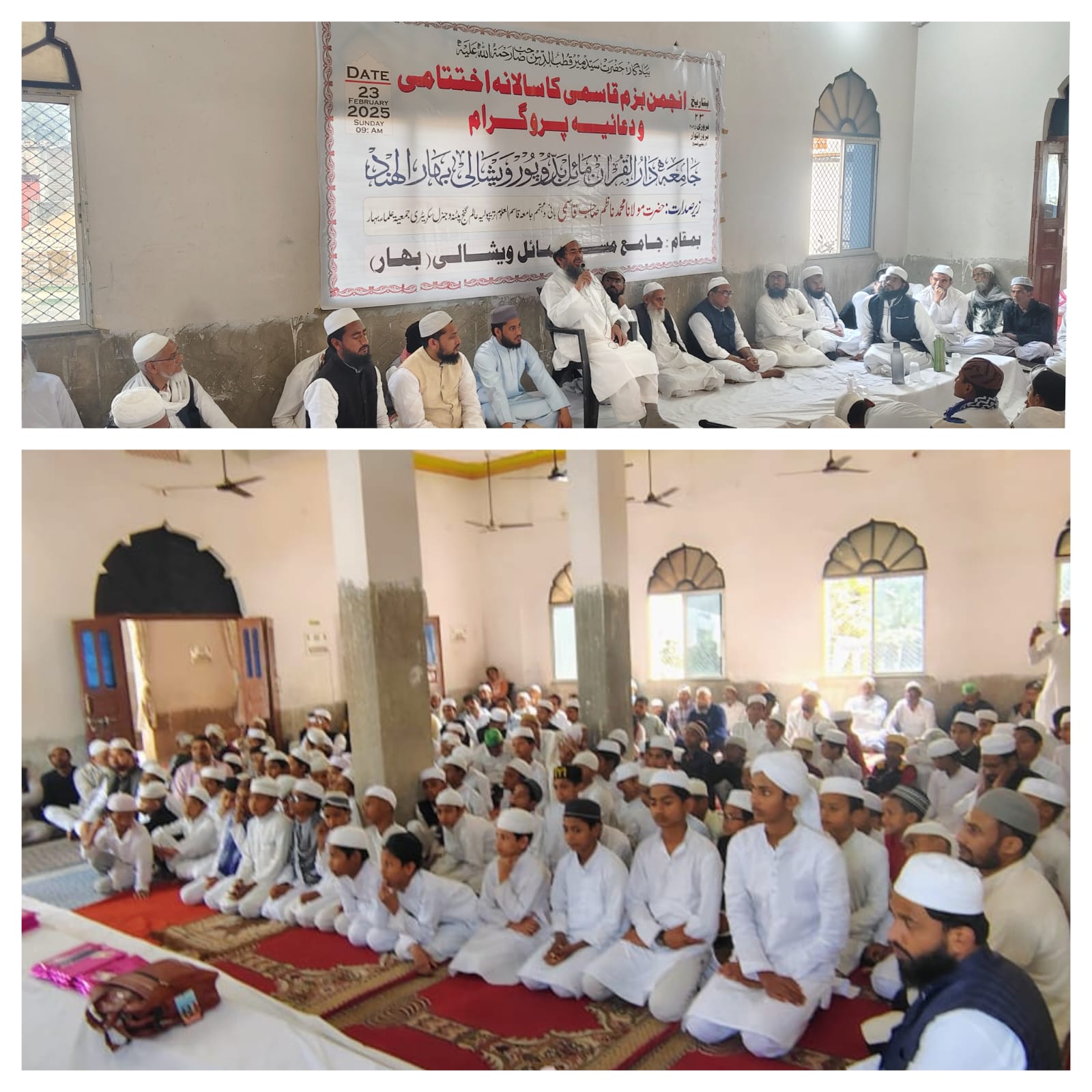 (حاجی پور/پریس ریلیز) جامعہ دارالقرآن مائل بدوپور کے ایک طالب علم محمد عفان بن محمد ارشاد پاتے پور نے حفظ قرآن مکمل کیا، اس کیلئے جامعہ ہذا کے بانی و مہتمم مولانا آصف جمیل قاسمی نے انجمن بزم قاسمی سالانہ اختتامی پروگرام کا انعقاد کیا، انجمن قاسمی کا سالانہ اختتامی پروگرام کا آغاز محمد عفان کی تلاوت اور نظامت مولانا توصیف فلاحی نے کی جسکی صدارت جمعیتہ علماء بہار کے جنرل سکریٹری حضرت مولانا محمد ناظم صاحب قاسمی دامت برکاتہم بانی و مہتمم جامعہ قاسم العلوم تریپولیہ عالم گنج پٹنہ نے فرمائی حضرت مولانا محمد ناظم صاحب قاسمی دامت برکاتہم جنرل سکریٹری جمعیتہ علماء بہار نے کہا کہ قرآن کریم پوری انسانیت کے لیے راہ نما کتاب ہے جس کو پروردگار عالم نے حضرت جبرئیل علیہ السلام کے واسطے سے آپ علیہ الصلوٰۃ والسلام کے قلب اطہر پر نازل فرمایا اور یہ کتاب ہدایت اس وقت سے لےکر اب تک بعینہٖ اسی طرح ہے جس طرح نازل ہوا تھا اور قیامت تک اسی طرح محفوظ رہے گا، دنیا کی کوئی طاقت اسے ردوبدل نہیں کر سکتی،اس لیے کہ کہ اس کی حفاظت کا وعدہ خو د اللہ رب العزت نے لیا ہے-مزید مولانا نے بتایا کہ آج تو دنیا میں قرآن کریم کے بےشمار حفاظ کرام موجود ہیں جس کے سینے میں کتاب اللہ پوری طرح محفوظ ہے- قیامت کے دن اللہ تعالی حافظ قرآن کو یہ حق دیں گے کہ وہ دس آدمیوں کی جنت میں لے جانے کے لئے پروردگار کے سامنے سفارش کرے اور حافظ قرآن کے والدین کو بھی اعزاز سے نوازا جائے گا اور ان کو سورج سے بھی زیادہ روشن تاج پہنایاجائے گا-انجمن قاسمی کا اختتامی پروگرام سے خطاب کرتے ہوئے ڈاکٹر حسیب الرحمان نے کہا کہ دینی تعلیم سے انسان خدا کی معرفت حاصل کرتا ہے اور دنیاوی تعلیم سے دنیا کی سرخروئی پاتا ہے پروردگار نے آپ حضرات کو دونوں طرح کی تعلیم حاصل کرنے کا موقع عنایت فرمایا ہے، آپ دینی تعلیم پر خوب محنت کریں اور عصری تعلیم پر بھی توجہ دیں تاکہ آپ کا دین اور دنیا دونوں بہتر ہو، انھوں نے بتایا کہ دینی تعلیم کا مقصد دنیا حاصل کرنا نہیں ہے بلکہ اللہ کی رضا اور معرفت حاصل کرنا ہے اور جو انسان اللہ کی معرفت حاصل کئے بغیر عبادت کرتا ہے تو وہ بسا اوقات ناکام اور گمراہ بھی ہو جاتا ہے اسی لئے دینی تعلیم حاصل کرنا ہر انسان کے لئے ضروری ہو جاتا ہے- پروگرام کے دوران جامعہ کے بچوں نے بھی اپنا مظاہرہ پیش کیا، جس میں طلبہ نے تلاوت، نعت، اردو اور انگلش میں تقریروخطابت بہت خوبصورت انداز میں پیش کیا، جسےسامعین اوراسٹیج پر موجود مہمانان اور معززعلماءکرام نےخوب سراہا اور ڈاکٹر ایچ رحمان نے بھی ڈھیر ساری دعائیں دیں،اوربچوں کوانعامات سےبھی نوازا جامعہ کے بانی و مہتمم مولانا آصف جمیل قاسمی اور جملہ اساتذہ و کارکنان کو مبارکباد پیش کیا واضح ہو کہ جامعہ دارالقرآن مائل بدوپور ویشالی ایک دینی تعلیمی ادارہ ہے فی الوقت جامعہ میں مقامی وبیرونی (140) طلبہ ،7, اساتذہ کی نگرانی میں دینی اور عصری تعلیم حاصل کررہے ہیں اور 100 طلبہ کے طعام وقیام کا انتظام منجانب ادارہ کیا جاتا ہے اس موقع پر مولانا مبارک قاسمی مولانا توصیف مولانا شاہزیب قاسمی مولانا صغیر احمد حقانی نے بھی خطاب کیا اور کہا کہ مدارس اسلامیہ دین کے قلعے اور اسلام کے محافظ ہیں، مدارس قائم ہیں تو ہمارا دین و ایمان محفوظ ہیں اور ہمیشہ مدارس نے ایسے افراد تیار کیے ہیں جنھوں نے ہمیشہ ملک کی خدمت کی ہے ایسے حالات میں اپنے بچے اور بچیوں کو دینی تعلیم سے ضرور آراستہ کریں مخلوط تعلیم سےبچنےکیلیےہم خود ایساادارہ قائم کریں جس میں دینی تعلیم کے ساتھ ساتھ عصری تعلیم پر توجہ ہویہ بہت ہی آسان کام اگرہم کرناچاہیںجس طرح چندہ کرکےہم مدارس بناتےہیں اسی طرح چندہ کرکےاسکول کالج بھی قائم کرسکتےہیں اسلیےکہ تین فیصدمسلم بچےہی اعلی تعلیم حاصل کرتےہیں زیادہ ترمسلم بچےانٹریاگریجویشن کرکےچھوڑ دیتے مولانا آصف جمیل قاسمی بانی ومہتمم جامعہ دارالقرآن مائل بدوپور ویشالی و جنرل سکریٹری جمعیۃ علماء ویشالی نے قرآن کی فضیلت پر روشنی ڈالتے ہوئے کہا کہقر