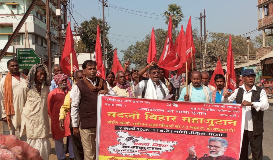 بہارشریف(محمد راشد عالم) 2 مارچ کی مہاجوٹان ریلی کی تیاری کے مدنظر سی پی آئی-ایم ایل اور کھیمس کے کارکنوں کی ایک مشترکہ میٹنگ منعقد ہوئی جس کے بعد ایکنگر سرائے بازار میں ایک جلوس نکالا گیا۔میٹنگ سے خطاب کرتے ہوئے کہا کہ سی پی آئی-ایم ایل عوامی تحریک کے ضلع سکریٹری رامی رام نالند نے کہاکہ پٹنہ میں 2 مارچ کو بہار کے عام عوام لوگوں کا مہاجوٹان پروگرام منعقد ہوگا جس میں دیہی دلتوں سے لے کر اسکیم ورکرز،صفائی ورکرز،کنٹریکٹ پلاننگ،اعزازیہ اور آؤٹ سورسنگ ورکرز تک لاکھوں لوگ حصہ لیں گے،قرض معافی کے معاملے پر مائیکرو فائنانس قرضوں کے بوجھ تلے دبی خواتین ہزاروں کی تعداد میں پٹنہ پہنچیں گی۔بے گھر غریب زمین اور مستقل مکانات کا مسئلہ منظم انداز میں اٹھائیں گے اور بلڈوزر راج کی مخالفت کریں گے۔لاکھوں آسامیاں خالی ہونے کے باوجود لائبریرین سمیت دیگر آسامیوں پر بھرتیوں کا مسئلہ بھی ہوگا۔طلبہ اور نوجوانوں کی جانب سے اٹھایا جائے گا،تعلیم اور امتحان کی ابتر صورتحال بھی بڑا مسئلہ بھی ہوگا۔دریں اثنا، ایکنگرسرائے کے سی پی آئی-ایم ایل انچارج پرمود یادو نے کہا کہ پولیس انتظامیہ بی جے پی کے اشاروں پر ناچنے کا مسئلہ بن گیا ہے۔کئی مقامات پر اقلیتوں کو تباہ اور پریشان کیا جا رہا ہے۔ایسے میں رمضان المبارک کے باوجود اقلیتی برادری کی اچھی شرکت ہوگی۔ انہوں نے کہا کہ گاندھی میدان سے تمام غریبوں کو 2 لاکھ روپے،مفت بجلی کے 200 یونٹ، بڑھاپے کی بیوہ اور معذوروں کو 2000 روپے کی پنشن،5 اعشاریہ 5 کی زمین،5 لاکھ روپے کے پکے مکان کی رقم،مہنگائی اور بڑھتے ہوئے جرائم پر چیک وغیرہ جیسے مسائل پر آواز اٹھائی جائے گی۔اس موقع پر سینکڑوں افراد جلوس میں موجود تھے۔