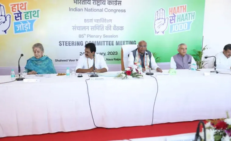 رائے پور: چھتیس گڑھ کے رائے پور میں جمعہ سے شروع ہونے والے کانگریس کے 85ویں کنونشن کی تیاریاں آخری مرحلے میں ہے۔ ملک بھر سے کانگریس لیڈران چھتیس گڑھ پہنچنے لگے ہیں۔ چھتیس گڑھ حکومت اور ریاستی کانگریس نے سبھی لیڈروں کے ٹھہرنے، آمد و رفت اور سیکورٹی کے انتظامات کیے ہیں۔ کنونشن میں 15000 سے زیادہ کانگریس لیڈران کے جمع ہونے کی امید ہے۔ کنونشن سے ایک دن قبل آج کانگریس کے قومی صدر ملکارجن کھڑگے رائے پور پہنچ جائیں گے۔ کانگریس لیڈر راہل گاندھی 24 فروری کو اور پرینکا گاندھی 25 فروری کو رائے پور پہنچیں گے۔سہ روزہ کنونشن میں کئی اہم امور پر فیصلے لیے جائیں گے۔ امید ظاہر کی جا رہی ہے کہ میٹنگ میں اسی سال ہونے والے اسمبلی اور 2024 کے لوک سبھا انتخاب پر صلاح و مشورہ کے ساتھ ہی مہم کا ایک خاکہ بھی تیار کیا جائے گا۔ کنونشن میں روڈپ میپ تیار کیا جائے گا جس سے پتہ چلے گا کہ انتخابی میدان میں کانگریس پارٹی کس انداز میں اترے گی۔ کنونشن کے آخری دن یعنی 26 فروری کو ایک جلسہ عام کا بھی انعقاد عمل میں آئے گا۔کانگریس جنرل سکریٹری (تنظیم) کے سی وینوگوپال کا کہنا ہے کہ مکمل اجلاس کی ٹیگ لائن ’ہاتھ سے ہاتھ جوڑو‘ ہوگی، جو کہ پارٹی کے ذریعہ 26 جنوری سے شروع کی گئی مہم ہے۔ کنونشن میں 1338 منتخب اور 487 اے آئی سی سی رکن، 9915 پی سی سی نمائندہ اور 3000 پی سی سی اراکین کو ملا کر ملک بھرسے تقریباً 15000 لوگوں کے شامل ہونے کی امید ہے۔ کانگریس کے ضلعی صدور، ’بھارت جوڑو یاترا‘ کے دوران کانگریس لیڈر راہل گاندھی کے ساتھ چلنے والے 120 دیگر لوگوں اور فرنٹل تنظیموں کے تمام عہدیداران کے بھی پارٹی کے مکمل اجلاس (پلینری کنونشن) میں شامل ہونے کا امکان ہے۔کانگریس لیڈروں کے ٹھہرنے کے لیے رائے پور میں بہترین انتظامات کیے گئے ہیں۔ رائے پور اور نیا رائے پور میں سبھی بڑے ہوٹل، گیسٹ ہاؤس، ریسورٹ، سرکٹ ہاؤس اور دھرمشالاؤں کی بکنگ کر لی گئی ہے۔ لیڈروں کے لیے نیا رائے پور کے میفیئر ریسورٹ کو بھی بک کیا گیا ہے۔ مہمانوں کے لیے 1500 سے زیادہ گاڑیوں کا انتظام ہوگا۔ اس کے لیے ناگپور اور دہلی سے لگژری کاریں اور اندور-ناگپور سے لگژری بسیں منگوائی گئی ہیں۔ اس کے علاوہ 700 چھوٹی گاڑیوں کی بکنگ بھی کی گئی ہے۔