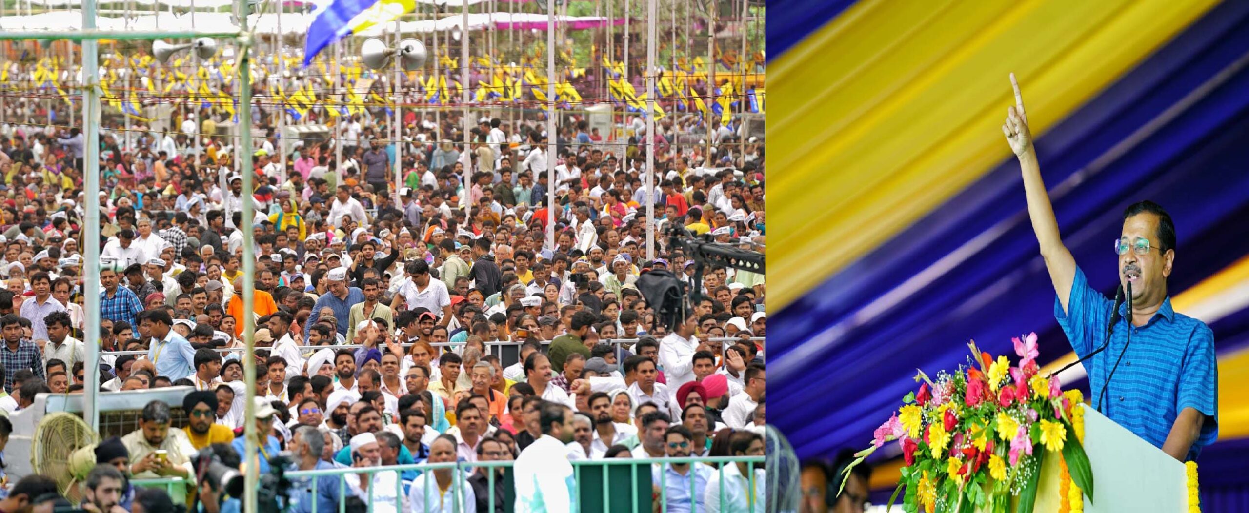 ملک کے آئین اور جمہوریت کو بچانے کے لیے آپ کی ریلی کے لیے پوری دہلی سے ایک بہت بڑا ہجوم رام لیلا میدان میں جمع ہوا