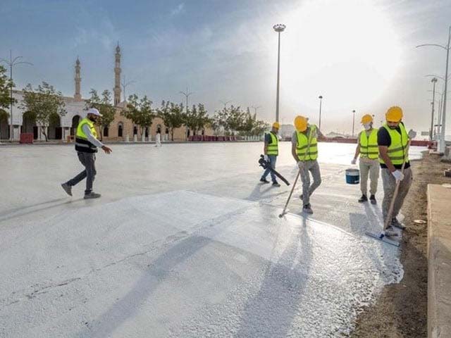 مکہ مکرمہ (یو این آئی)سعودی عرب میں دوران حج گرمی کی شدت کو 20 ڈگری سیلسیس تک کم کرنے کیلئے سڑکوں پر سفید پینٹ کیا جانے لگا۔ایشیائی ممالک کی طرح عرب ممالک بھی گرمی کی لپیٹ میں ہیں جہاں سعودی عرب میں حج سیزن کے دوران شدید گرمی پڑرہی ہے۔العربیہ اردو کی رپورٹ کے مطابق عرفات میں گرمی کی شدت کو کم کرنے اور عازمین حج کو بہتر سہولیات دینے کی غرض سے سعودی جنرل اتھارٹی نے مسجد نمرہ کے اردگرد سفید رنگ کروانا شروع کردیا ہے۔اس حوالے سے روڈ اتھارٹی کے ترجمان نے بتایا کہ سڑکوں پر مخصوص قسم کا سفید رنگ لگانے سے گرمی کی شدت کو 20 ڈگری سیلسیس تک کم کیا جاسکتا ہے، منیٰ میں جمرات جانے والے راستے پر یہی روغن لگایا گیا تو وہاں 12 سے 15 ڈگری گرمی کم ہوگئی۔روڈ اتھارٹی کے ترجمان کے مطابق سڑکوں پر لگایا جانے والا مخصوص روغن مقامی طور پر تیار ہوا ہے اور اس میں دھوپ کی حرارت کم جذب ہوتی ہے، مسجد نمرہ کے قریب کم و بیش 25 ہزار مربع میٹر پر روغن لگایا گیا ہے، گزشتہ برس یہی تجربہ محدود رقبے پر کیا گیا جس کے اچھے نتائج برآمد ہوئےتھے۔