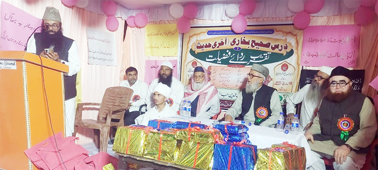 لکھنو، سا ل ہائے گذشتہ کی طرح امسال بھی کلیتہ الصدیقتہ الاسلامیہ للبنات لکھنو میں میں تقریب ختم صحیح البخاری، اور سالانہ اجلاس عام کا انعقاد انتہائی تزک و احتشام کےساتھ ہوا۔ طالبات نے تعلیمی مظاہرہ کے پرو گرام میں حمدو نعت کےساتھ اردو، ہندی،انگلش اور عربی زبان میں تقاریر پیش کیں،جسے سامعین وسامعات نے کافی پسندکیا۔شہاب الدین مدنی نے اپنے مخصوص اسلوب۔جامع اور دلنشین انداز میں صحیح بخاری کی آخری حدیث کادرس دیا۔شیخ نے اپنا سلسلہ سند بھی طالبات کو دیا اور بتایاکہ ان کے اورشیخ الکل فی الکل سید نذیرحسین محدث دہلوی رحمہ اللہ کے درمیان صرف دوواسطہ ہے۔ بعد صلاۃ مغرب اجلاس عام کی صدارت حافظ عتیق الرحمن طیبی نے فرمائی۔ استقبالیہ کلمات میںککلیتہ الصدیقتہ الاسلامیہ للبنات کے صدر مولانا شہاب الدین مدنی نے تمام مہمانان گرامی قدر، شرکائےاجلاس خواتین وحضرات کا بصمیم قلب والہانہ استقبال کیا۔ انہوںنے بتایاکہ 2003میں کلیہ کاقیام عمل میں آیاتھااور الحمدللہ آج کلیہ کی فاضلات کا چھٹابیچ سند فضیلت حاصل کررہاہے، ادارہ کے لئے سب سے شرف اور مسرت و شادمانی کی بات یہ ہےکہ اس سال کلیہ کی دوفاضلات کا داخلہ عالم اسلام کی عظیم یونیورسٹی جامعہ ام القری میں ہو چکا ہے فالحمدللہ علی ذالک۔ اجلاس عام کا آغاز معہد الفرقان سے اسی سال سند حفظ حاصل کرنے والے طالب علم حافظ محمد کی تلاوت قرآن مجیدسےہو عبدالودود نے نعت رسول اکرم صلیٰ اللہ علیہ وسلم پیش کی۔بعدازاں مولانا فریدالدین فیضی نے اپنے ولولہ انگیز خطاب میں قرآن مجید اوراحادیث رسول صلی اللہ علیہ وسلم کی روشنی میں مومنین کی صفات کو بہت ھی دلنشین اندازمیں بیان کیا۔اجلاس کے خصوصی مقرر مولانا محمد ابراہیم مدنی امیر ضلعی جمعیت اہل حدیث سدھارتھ نگرکہاکہ جماعت کے غیور ومتحمس علمائے کرام اس بات کی ضرورت شدت سے محسوس کررہے تھے کہ شہر لکھنو میں اپنا ایک ادارہ اور مرکز ہو جہاں سے علوم کتاب وسنت کی صحیح روشنی پھوٹے جس سے لوگ فیضیاب ہوں ، الحمد للہ اللہ رب العزت نے اس اہم ذمہ داری کی انجام دہی کےلئے شیخ شہاب الدین مدنی کا انتخاب فرمایا۔لکھنو کی ایک سماجی شخصیت حاجی عارف شفیع اپنے تاثرات میں رقت آمیز لہجے میں ان ایام کا ذکر کیااور کہاکہ شہر لکھنو میں اللہ کے فضل کے بعدمولاناشہاب الدین مدنی کی کاوشوں سے لوگ مسلک اہل حدیث قبول کرنے لگے تو ان کو حراساں کرنےکےلئےسنہ 2009میں عین عید کےدن دوسوکے قریب بعض نام نہاد مسلمانوں نے ان کے گھر پر حملہ کردیا گھر کے سامنے کھڑی ان کی گاڑی میں توڑ پھوڑکی اور حد تو یہ ہے کہ چھپر والی مسجد اہل حدیث کا دروازہ توڑنے کی کوشش کی۔ لیکن مولانا کے پائے ثبات میں لغزش نہیں آئی۔ اور الحمدللہ یہ سلفی کارواں اپنی منزل کی طرف رواں دواں ہے۔ صدر اجلاس حافظ عتیق الرحمن طیبی نے اپنے صدارتی خطاب میں سامعین کو قول وعمل میں اخلاص وللہیت کی تلقین کی اور اس اہم ادارہ کے قیام کےلیے مولانا شہاب الدین مدنی کو مبارکباد پیش کی اور دعوتی میدان میں ان کے جہد مسلسل کو سراہا۔ آخر میں محمد ابراہیم مدنی، حافظ عتیق الرحمن ، بشہابب الدین مدنی ، مولانا سراج الدین سراجی الحاج عارف شفیع ، الحاج ماسٹر عنایت اللہ ، ماسٹر محمدعلی اور دیگرمعززین کے ہاتھوں کلیہ کی فاضلات کو سند فضیلت اور ردائے فضیلت سے نوازا گیا۔