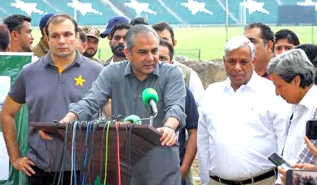 محسن نقوی نے سنیچر کو قذافی سٹیڈیم لاہور میں جاری تعمیراتی کاموں کا جائزہ لینے کے لیے دورے کے موقع پر مقامی میڈیا کے ساتھ غیر رسمی گفتگو کی۔