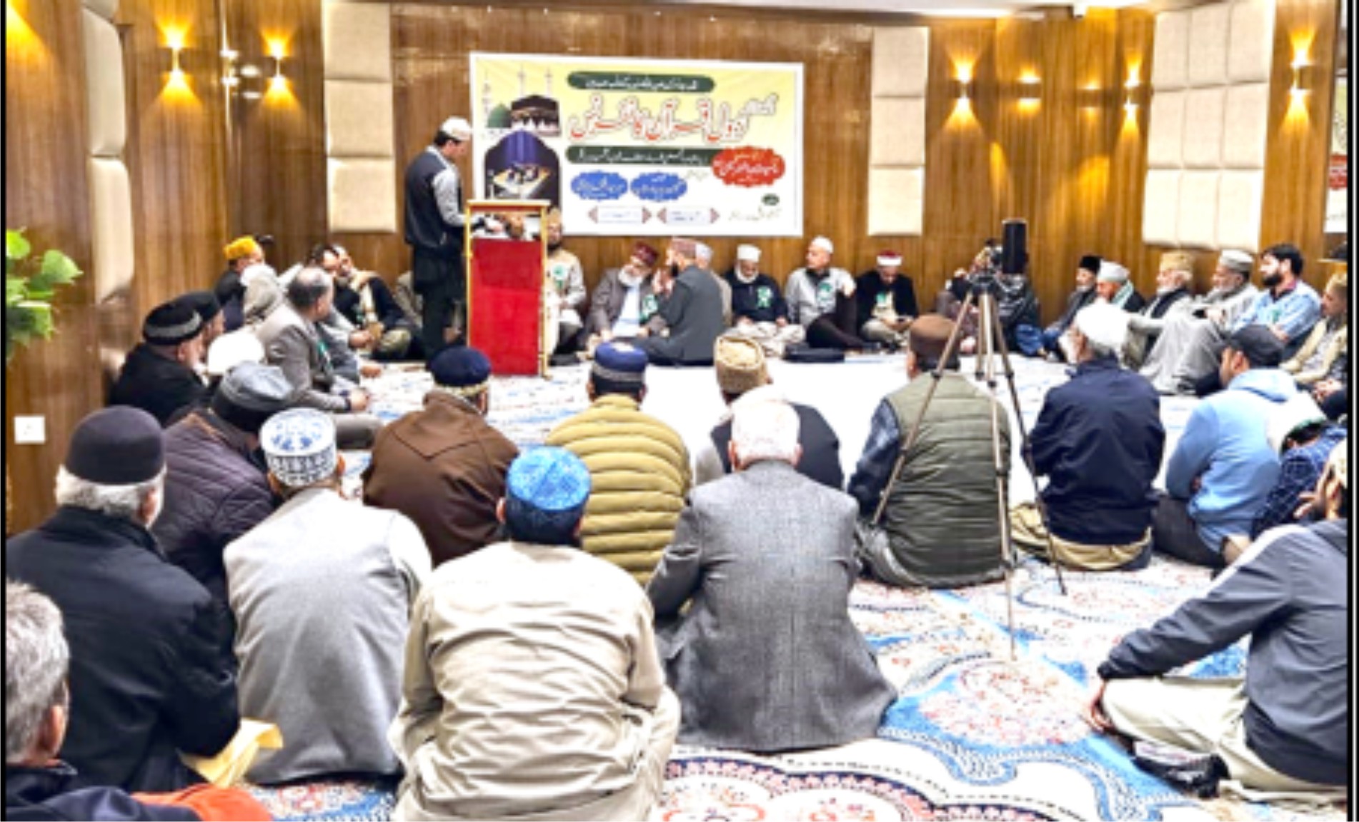 سرینگر ،پریس ریلیز،ہماراسماج: آج سری نگر کے ایک مقامی ہوٹل میں انجمن علمائے احناف جموں و کشمیر کے اہتمام سے ایک روزہ نزول قران کانفرنس کا انعقاد ہوا -جس میں مقتدر علماء و فضلا ءکے علاوہ کشمیر کی مختلف درگاہ ہوں، خانقاہوں اور آستانوں کے خدام صاحبان، مشائخ، پیر صاحبان اور عقیدت مندوں کی خاصی تعاد نے شرکت کی- انجمن علمائے احناف کی طرف کے سربراہ پیر زادہ مولانا اخضر حسین کی کاوشوں سے منعقدہ اس کانفرنس کی صدارت سید افتخار احمد کاملی نے کی – کانفرنس کی نظامت کے فرائض ڈاکٹر سید شمس الرحمان نے انجام دئے – کانفرنس کا آغاز قاری بلال کے تلاوت قرآن سے ہوا- جس کے بعد وادی کشمیر کے معروف نعت گو شاعر و نعت خوان غلام حسن غمگین نے منفرد آواز میں نعت نبی صلی اللہ علیہ وسلم پیش کیا- اس روح پرور تقریب میں جن عالموں اور روحانی بزرگوں نے نزول قرآن سے متعلق تقاریر کیں ان میں محمد اشرف عنایتی، پروفیسر سید طیب کاملی، مولانا خورشید احمد قانون گو، مولانا شوکت حسین کینگ اور سید افتخار احمد کاملی شامل۔ہیں – اس کے علاوہ میر واعظ کشمیر کا تحریری بیان بھی سنایا گیا- فتح پوری چاندنی چوک دلی کی شاہی مسجد کے امام و خطیب ڈاکٹر مفتی محمد مکرم نے ٹیلی فون پر لائیو دعائیہ کلمات کہے – جب کہ مولانا پیر زادہ اخضر حسین نے خطبہ استقبالیہ پڑھ کر تمام شرکاء کانفرنس کا شکرانہ ادا کیا- کانفرنس کے آخر پر صوفی میڈیا سروسز کے ڈائریکٹر خادم فقراء پیرزادہ منظور ظہور شاہ چشتی سمیت کئی شخصیات کی دستار بندی کی گئی۔