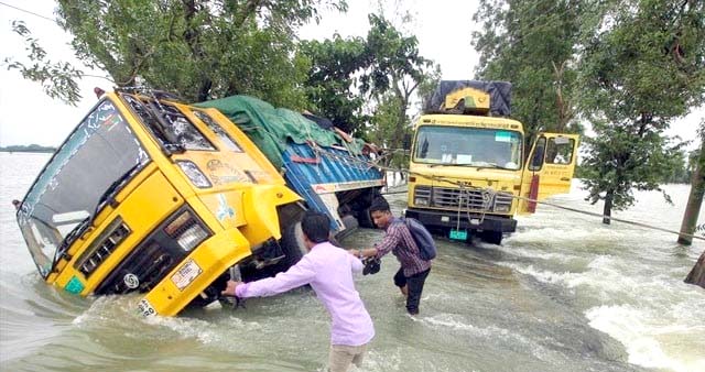 ڈھاکا: بنگلادیش کے 11 اضلاع میں سیلابی ریلے نے اپنے راستے میں آنے والی ہر شے کو تہس نہس کرکے رکھ دیا۔عالمی خبر رساں ادارے کے مطابق بنگلادیش میں سیلاب نے 200 سے زائد دیہاتوں کو تباہ کردیا جن میں سے 50 کے قریب مکمل طور پر ڈوب گئے اور سلابی ریلہ آگے بڑھتا ہی جا رہا ہے۔اب تک 500 سے زائد تالاب اور 2500 ایکڑ اراضی پر ماہی گیری زیر آب آ چکی ہے جن میں مچھلیوں کو پالا جاتا اور پھر فروخت کی جاتی تھیں۔ماہی گیروں کا کہنا ہے کہ سیلاب میں ان کا گھر ہی نہیں بلکہ سرمایہ بھی ڈوب گیا۔ کئی ایکڑوں پر کھڑی فصلوں کو بھی شدید نقصان پہنچا ہے۔سیلاب سے متاثر 64 ہزار افراد نے 724 پناہ گاہ مراکز میں پناہ لی ہے اور اب بھی مجموعی طور پر 8 لاکھ 30 ہزار سے زائد شہری پھنسے ہوئے ہیں۔امدادی کاموں کے دوران لاشیں ملنے کا سلسلہ جاری ہے۔ مجموعی طور پر 25 سے زائد افراد جاں بحق ہوگئے۔ ہلاکتوں میں اضافے کا خدشہ ہے۔