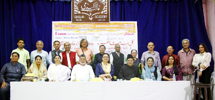 نئی دہلی، بزمِ فراز ادب’ رجسٹرڈ اور فنکار‘ کلچرل گروپ کے زیرِ اہتمام ایک عالیشان کل ہند مشاعرہ و کوی سمیلن غالب اکیڈمی حضرت نظام الدین نئی دہلی میں منعقد ہوا۔ جس کی صدارت ڈاکٹر عقیل احمد نے کی جبکہ نظامت کے فرائض میزبان سرفراز احمد فراز دہلوی نے بخوبی انجام دینے اور مہمانِ خصوصی کے طور پر شیدا امروہوی متیں امروہوی، اقبال نظم، الماس عباسی،برہم کماری شیتل اسٹیج پرجلوہ افروز رہے۔شعراءمیں شیدا امروہووی،متیں امروہوی سرفراز احمد فراز دہلوی،شفا کجگاونوی،نسیم احمد نسیم ،نظم اقبال،احترام صدیقی کے علاوہ مدعو شعراءمیں پریم بہاری مشرا، سشما کماری سایہ، سیما کوشک، پرمود شرما اثر، راجندر کل کل،پروین ویاس،ریشما زیدی، انجلی اروڈا، نورالعین قیصر،راغب ککرالوی،جاوید عباسی،نعیم ہندوستانی، نسیم بادشاہ، انل ورما میت، اسلم جاوید، تللکا سیٹھ و دیگر شعراءنے اپنا کلام پیش کیا۔اخیر میں بزمِ فراز ادب کے چیئرمین سرفراز احمد فراز دہلوی اور فنکار، کلچرل گروپ کے ڈائریکٹر احترام صدیقی نے تمام حاضرین کا شکریہ ادا کیا اور صدر مشاعرہ ڈاکٹرر عقیل احمد نے اپنے خطاب میں مشاعرے کی کامیابی کے لیے سرفراز احمد فراز دہلوی اور احترام صدیقی کو مبارکباد دی اور امید جتائی کہ آ ئندا بھی اسی طرح شعری محفل سجاتے رہیں گے۔