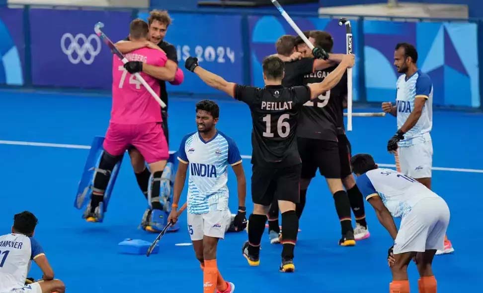 پیرس؍نئی دہلی  ( آئی این ایس انڈیا ) پیرس اولمپکس 2024 کے ہاکی ایونٹ کا دوسرا سیمی فائنل میچ ہندوستانی ہاکی ٹیم اور ہندوستانی شائقین کے لیے اچھا نہیں رہا۔یہ میچ ہندوستان اور جرمنی کے درمیان کھیلا گیا تھا،جس میں جیت کر ہندوستان کا میڈل یقینی ہوجاتا تھا،لیکن سیمی فائنل میں شکست کے بعد ہندوستانی ہاکی ٹیم اب گولڈکی دوڑ سے باہر ہوگئی ہے۔ اس دلچسپ مقابلے میں جرمنی نے بھارت کو 3-2 سے شکست دی۔ جس کے بعد تجربہ کار ہاکی کھلاڑیوں سے لے کر ہندوستانی شائقین تک سبھی نے سوشل میڈیا پر اپنے ردعمل کا اظہار کیا۔ہندوستانی ٹیم نے میچ کا آغاز شاندار انداز میں کیا۔ ہرمن پریت سنگھ نے پہلے کوارٹر میں گول کر کے ٹیم کو 1-0 کی برتری دلا دی۔ لیکن جرمنی نے دوسرے کوارٹر میں زبردست واپسی کی۔ گونزالو پیلیٹ نے 18ویں منٹ میں گول کر کے اسکور برابر کر دیا۔ اس کے بعد 27ویں منٹ میں کرسٹوفر روہر نے ایک اور گول کر کے جرمنی کو برتری دلا دی۔36ویں منٹ میں ہندوستان کو پنالٹی کارنر ملا،جسے ہرمن پریت نے ڈریگ فلک کے ذریعے گول پوسٹ کی طرف مارا۔ سکھجیت نے اس فلک پر ڈیفلیکشن لیتے ہوئے جرمن گول کیپر جین پال ڈینیبرگ کی گیند کو گول میں ڈال دیااور اسکور 2-2 سے برابر ہوگیا۔54ویں منٹ میں مارکو ملٹکاؤنے اوپن پلے سے گول کر کے جرمنی کو فیصلہ کن برتری دلا دی۔ اس میچ میں ہندوستانی ٹیم کو دفاعی کھلاڑی امیت روہیداس کی کمی محسوس ہوئی،جو ایک میچ کی معطلی کی وجہ سے نہیں کھیل سکے۔میچ کے دوران کئی متنازع فیصلے بھی ہوئے۔ایک پنالٹی کارنر پ کو لے کر ر تنازعہ پیدا ہو ا،جب جرمنی کو ایک پنالٹی کارنر دیا گیا۔ سابق بھارتی کپتان وریندر رسکنہا نے اس فیصلے پر سوال اٹھاتے ہوئے کہا کہ گیند جرمن کھلاڑی کے شن پیڈ سیلگی تھی۔جرمنی کیخلاف شکست کے بعد ہندوستانی ہاکی ٹیم 8 اگست کو شام 5:30 بجے اسپین کے خلاف برونز میڈل کے لئے میچ کھیلے گی۔ آپ کو بتاتے چلیں کہ اسپین کو سیمی فائنل میچ میں ہالینڈ سے شکست کا سامنا کرنا پڑا تھا۔ اب اس میچ کے لیے ڈریگ فلکر روپندر پال سنگھ نے کھلاڑیوں سے برونز میڈل جیت کر اچھی کارکردگی دکھانے کی اپیل کی ۔
