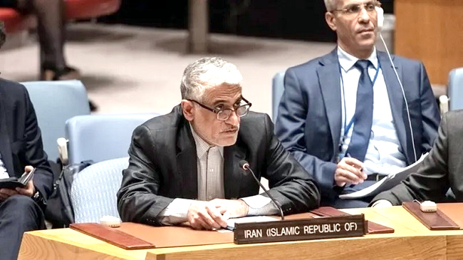 تہران(ہ س)۔اقوام متحدہ میں ایران کے مندوب امیر سعید ایروانی نے سلامتی کونسل کے اجلاس سے خطاب کرتے ہوئے کہا ہے کہ ان کا ملک امریکہ کی جانب سے کیے گئے حملے کا جواب دینے کا مکمل حق رکھتا ہے۔انہوں نے کہا کہ ایران کی مسلح افواج امریکی حملوں کے جواب میں ردعمل کا وقت، نوعیت اور دائرہ خود متعین کریں گی اور یہ کارروائی مکمل طور پر متناسب ہوگی۔ایروانی نے واضح کیا کہ امریکہ کی جانب سے تہران پر جو الزامات عائد کیے جا رہے ہیں وہ بے بنیاد، سیاسی مقاصد پر مبنی اور قانونی جواز سے محروم ہیں۔ان کا کہنا تھا کہ امریکہ نے ایران پر حملے کے لیے خود ساختہ بہانے تراشے اور اس جارحیت کے ذریعے بین الاقوامی قانون کی کھلی خلاف ورزی کی۔ایرانی مندوب نے مزید کہا کہ "امریکہ نے بنجمن نیتن یاھو کی حمایت میں اپنے قومی سکیورٹی مفادات کو قربان کر دیا ہے”۔انہوں نے زور دے کر کہا کہ "ایران کے جوہری ہتھیار حاصل کرنے کے قریب ہونے کے الزامات کا کوئی ثبوت موجود نہیں”۔