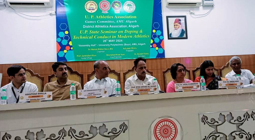 علی گڑھ، 27؍ مئی،سماج نیوز سروس: یونیورسٹی گیمز کمیٹی، علی گڑھ مسلم یونیورسٹی (اے ایم یو) نے اتر پردیش ایتھلیٹکس ایسوسی ایشن کے اشتراک سے اے ایم یو بوائز پولی ٹیکنک کے اسمبلی ہال میں ’’ڈوپنگ اور جدید ایتھلیٹکس کے تکنیکی اصول‘‘ کے موضوع پر ایک ریاستی سیمینار کا انعقاد کیا، جس میںمختلف ماہرین نے شرکت کی اور ڈوپنگ کی مختلف جہات پر اظہار خیال کرتے ہوئے کارکردگی بڑھانے کے مقصد سے ممنوعہ اشیاء کے استعمال کے خطرات اور کھلاڑیوں کے کریئر کو ہونے والے نقصانات کے بارے میں آگاہ کیا۔ مسٹر آشوتوش بھلا، صدر، یوپی ایتھلیٹکس ایسوسی ایشن نے کہا کہ ہمارا مقصد اترپردیش کے کھلاڑیوں میں ڈوپنگ کے سلسلہ میں بیداری پیدا کرنا ہے، اور تمام اضلاع میں اس طرح کے سیمینار منعقد کرنے کی کوشش کی جائے گی۔ انہوں نے ایسوسی ایشن کے ایک اہم پروگرام کو کامیابی سے منعقد کرنے والے یونیورسٹی کے تمام ذمہ داران کا شکریہ ادا کیا۔مہمان خصوصی پروفیسر امجد علی رضوی، سکریٹری، اے ایم یو گیمز کمیٹی، پروفیسر وینا مہیشوری، ڈین، فیکلٹی آف میڈیسن، اور پرنسپل، جے این میڈیکل کالج، اے ایم یو، اور پروفیسر فرح اعظمی، پرنسپل، کالج آف نرسنگ، اے ایم یو نے موضوع کی اہمیت پر گفتگو کی اور اس سلسلے میں یوپی ایتھلیٹکس ایسوسی ایشن کی کوششوں کو سراہا۔دہلی کے ڈوپ کنٹرول آفیسر، ڈاکٹر بھوپیندر کمار نے کھلاڑیوں کو ممنوعہ ادویات کے استعمال سے ہونے والے نقصانات کے بارے میں بتایا۔ایتھلیٹکس فیڈریشن آف انڈیا کے عہدیدار ڈاکٹر راجن بھاٹیا نے جدید ایتھلیٹکس کی تکنیکی باریکیوں پر روشنی ڈالی۔ یوپی ایتھلیٹکس ایسوسی ایشن کے سی ای او مسٹر پی کے سریواستو نے اے ایم یو کے رجسٹرار جناب محمد عمران آئی پی ایس، وائس چانسلر کے او ایس ڈی پروفیسر اسفر علی خان اور پروفیسر ضمیر اللہ خاں، صدر، ایتھلیٹکس کلب، اے ایم یو کا سیمینار کے شاندار انعقاد کے لیے خصوصی شکریہ ادا کیا۔ مسٹر منیش موہن گوول آئی آر ایس، چیئرمین، یوپی ایتھلیٹکس ایسوسی ایشن نے کہا کہ علی گڑھ مسلم یونیورسٹی میں پہلی بار ریاستی سیمینار کا انعقاد کیا گیا-