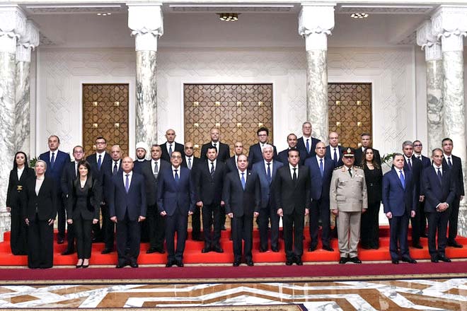 قاہرہ :مصر کے وزیراعظم مصطفی مدبولی کی سربراہی میں نئی کابینہ نے بدھ کو قاہرہ کے الاتحادیہ پیلس میں صدر عبدالفتاح السیسی کے سامنے حلف اٹھالیا۔مصری کابینہ میں ردوبدل، خزانہ اور خارجہ سمیت کئی وزرا کو تبدیل کرنے کا فیصلہ عرب نیوز کے مطابق صدرالسیسی نے وزیر اعظم مصطفی مدبولی اور ان کی کابینہ کو علاقائی اور بین الاقوامی چیلنجوں کا سامنا کرتے ہوئے قومی سلامتی برقرار رکھنے سمیت متعدد اہداف کے حصول کی ذمہ داری سونپی ہے۔نئی کابینہ میں مصطفی مدبولی وزیر اعظم رہیں گے جبکہ کامل الوزیر جو مارچ 1919 سے وزیر ٹرانسپورٹ ہیں انہیں صنعت اور ٹرانسپورٹ کا قلمدان دیا گیا ہے۔ نائب وزیر اعظم کے طور پر بھی کام کریں گے۔