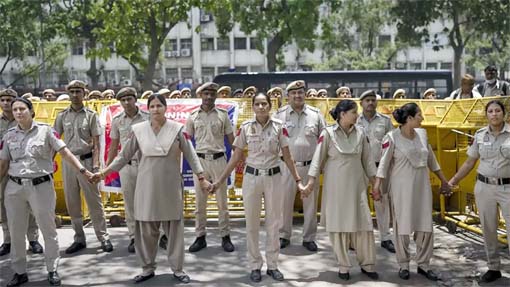 نئی دہلی ،یکم جون ،سماج نیوزسروس: ریسلنگ فیڈریشن آف انڈیا (ڈبلیو ایف آئی) کے سربراہ برج بھوشن شرن سنگھ کے خلاف احتجاج کرنے والے ملک کے چوٹی کے پہلوانوں کی حمایت میں یونائیٹڈ کسان مورچہ (ایس کے ایم) کی طرف سے ملک گیر احتجاج کی کال کے پیش نظر، دہلی پولیس نے شہر کی تمام سرحدوں پر حفاظت کے سخت انتظامات کیے ہیں۔ سنگھو، ٹکری اور غازی پور میں حفاظتی انتظامات سخت کر دیے گئے ہیں۔ ایک سینئر پولیس افسر نے جمعرات کو بتایا کہ کسی بھی ناخوشگوار واقعے سے نمٹنے کے لیے اضافی پولیس اہلکار تعینات کیے گئے ہیں اور اضافی چیک پوسٹیں قائم کی گئی ہیں۔ایک اور اہلکار نے بتایا کہ سیکورٹی کو بڑھا دیا گیا ہے۔ انہوں نے کہا ’’ہم نے دہلی کی سرحدوں پر اضافی چیک پوسٹیں قائم کر کے پولیس اہلکاروں کی موجودگی میں اضافہ کیا ہے۔ ہمارا مقصد امن و امان کو برقرار رکھنا اور کسی بھی ناخوشگوار واقعے کو روکنا ہے۔‘‘ عہدیدار نے یہ بھی بتایا کہ پڑوسی ریاستوں سے دہلی میں داخل ہونے والی گاڑیوں کی سرحدوں پر سخت چیکنگ کی جا رہی ہے۔ایس کے ایم نے منگل 5 جون کو گاؤں اور قصبے کے مراکز میں ڈبلیو ایف آئی کے سربراہ کے خلاف مظاہروں اور پتلے نذر آتش کا اعلان کیا ہے۔ قابل ذکر ہے کہ اسی دن آر ایس ایس کے کارکنوں اور مہنتوں نے برج بھوشن کی حمایت میں ایودھیا میں ریلی نکالنے کا اعلان کیا ہے۔ ایس کے ایم نے 28 مئی کو پہلوانوں کے احتجاج کو وحشیانہ طریقہ سے دبانے کی بھی مذمت کی، جس دن خواتین پہلوانوں نے مہیلا مہاپنچایت بلائی تھی۔اس میں کہا گیا ہے کہ جنسی ہراسانی کے خلاف احتجاج کرنے والے پہلوانوں کے خلاف مودی حکومت کی کارروائی ثابت کرتی ہے کہ یہ خواتین مخالف اور عوام مخالف ایجنڈا ہے۔ مظاہروں پر کریک ڈاؤن شہریوں کے احتجاج کے حق کی خلاف ورزی ہے، جسے سپریم کورٹ نے بارہا برقرار رکھا ہے۔ ایس کے ایم نے مظاہرین کے خلاف درج ایف آئی آر واپس لینے اور برج بھوشن کی گرفتاری کا بھی مطالبہ کیا۔