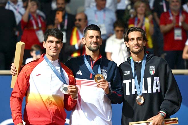 خبر رساں ادارے اے ایف پی کے مطابق اتوار کو رولینڈ گاروس میں کھیلے گئے فائنل میں نوواک جوکووچ نے سپین کے کارلوس الکاراز کو 2 گھنٹے 50 منٹ میں 7-6 (7/3)، 7-6 (7/2) سے شکست دے کر پہلا اولمپک ٹائٹل اپنے نام کیا اور کیریئر کی 24 گولڈن سلیم فتوحات میں اولمپکس گولڈ میڈل شامل کیا۔
