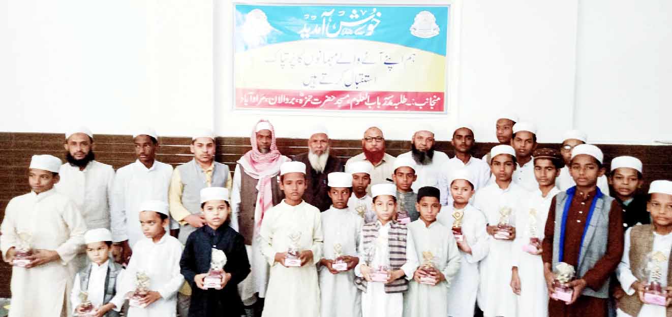 بروالان میں واقع مدرسہ باب العلوم مسجد حمزہ میں تقسیم انعامات کی نورانی محفل منعقد ہوئی۔ اس محفل کا آغاز تلاوت کلام پاک و نعت نبی سے ہوا۔ اس نورانی محفل کی صدارت مدرسہ ہذا کے مہتمم ظہیر الدین نے کی اور نظامت کے فرائض قاری محمد ارشد نے انجام دئےے۔ اس نورانی محفل کے مہمان خصوصی شہر جمعیة علماءکے کار گزار صدر قاری نجیب الرحمن تھے۔ محفل کی قیادت مدرسہ ہذا کے سرپرست حاجی خلیل احمد نے کی۔ مدرسہ ہذا کے 21حفاظ کرام کو تقسیم انعامات سے نوازا گےا اور ناظرہ کے ۱۶طلبہ کو بھی انعامات سے نوازا گےا۔ اس نورانی محفل کو خطاب کرتے ہوئے قاری نجیب الرحمن نے کہا کہ خوش نصیب ہیں وہ طالب علم جنہوں نے حفظ و ناظرہ مکمل کیا۔ اس گھنی آبادی والے علاقہ میں ۱۲طلبہ حافظ ہوئے ہیں جو قابل مبارک باد ہیں انہوں نے ان کے والدین کو مبارک باد دےتے ہوئے کہا کہ بروز حشر حافظ قرآن کے والدین کے سروں پر سونے سے بھیءزیادہ چمکتا ہوا تاج رکھا جائے گا۔ انہوں نے سبھی طلبہ کو نصےحت کرتے ہوئے کہا کہ آگے بھی اپنی تعلیم کو جاری رکھےں اور دینی تعلیم کو گھر گھر پہنچاکر اپنے مدرسہ اپنے اساتذہ اور والدین کا نام روشن کرےں۔ انہوں نے مدرسہ ہذا کے مہتمم و اساتذہ کو بھی مبارک باد دی ہے کہ انہوں ںے دن رات محنت کر کے21طلبہ کا حفظ مکمل کراکر بہت ہی اچھا کام انجام دیا ہے انہوں نے اساتذہ سے کہا کہ وہ آگے بھی اسی طرح محنت کر کے مدرسہ وعلاقہ کا نام روشن کریں۔ اس نورانی محفل کا اختتام عالمی امن کی دعاءکے ساتھ ہوا۔ اس محفل میں قاری محمد اعظم قاری محمد انس سمیت علاقہ کے کثےر تعداد میں لوگ موجودتھے