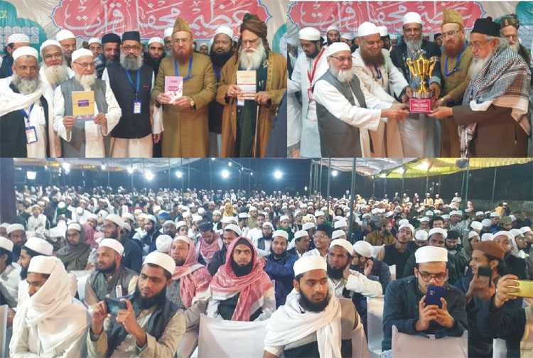 دیوبند، رکن رابطۂ عالم اسلامی مکہ مکرمہ و سابق صدر شعبۂ قراءت دارالعلوم دیوبند قاری ابوالحسن اعظمی کے تلامذہ اور محبین نے عظیم محفل قراءت اور قاری صاحب کے اعزاز میں گزشتہ شب عیدگاہ کے میدان میں اعزازی پروگرام کا انعقاد کیا۔ اس موقع پر ملک بھر کے قراءحضرات اور مؤقر علماءکرام نے شرکت کی۔ پروگرام کا آغاز تلاوت کلام پاک سے ہوا۔ اس موقع پر دارالعلوم وقف دیوبند کے مہتمم مولانا محمد سفےان قاسمی نے اپنے تحریری پےغام میں کہا کہ قاری ابوالحسن اعظمی کا فن قراءت میں درک اور اس حوالے سے خدمات شکر رب کے ساتھ ساتھ قدر افزائی کے متقاضی ہیں۔ انہوں نے کہا کہ میں دعاءگو ہوں کہ اللہ تعالیٰ موصوف کی فنی خدمات کو شرف قبولیت سے نوازتے ہوئے ان کے لئے اور جملہ مستفیدین کے لئے وسیلۂ نجات بنے۔ دارالعلوم دےوبند کے نائب مہتمم مولانا عبدالخالق مدارسی نے اپنے تحریری پےغام میں کہا کہ قاری صاحب کی شخصےت خدمت علم و فن کے حوالے سے تعارف و توصیف سے بالاتر ہوچکی ہے۔ اتنی طویل اور عظیم خدمات جس کی دورِ حاضر میں تو کےا ماضی قریب و بعید میں بھی کوئی مثال نہیں۔ انہوں نے کہا کہ ان کی علمی خدمات نے برصغیرہی نہیں عالم اسلام سے بھی اعتراف کرالےا جس کا بین ثبوت رابطۂ عالم اسلامی مکہ مکرمہ کی جانب سے پورے اعزاز کے ساتھ اساسی رکنیت ہے۔ مولانا مدراسی نے کہا کہ صرف اےک فن میں ایک سو چھتیس (۶۳۱) کے قریب اتنی عظیم تعداد کتب و دیگر موضوعات بے شک آپ کا کوئی ہمسر نہیں۔ یہ اسی حقیقت ثابتہ ہے کہ موافق تو موافق ہے مخالف کے لئے بھی اعتراف کے بغےر چارہ نہیں۔ انہوں نے کہا قاری صاحب کی ذات متقدمین اور اربابِ علم و فن کا واضح نمونہ ہی نہیں بلکہ کئی صدیاں اسی ہمہ جہت شخصےت کی مثال پیش کرنے سے قاصر ہیں۔ قاری محمد صدیق صاحب سانسرودی صدر شعبہ قراءت وتجوید دارالعلوم فلاح دارین ترکےسر گجرات نے کہا کہ قاری صاحب کے دماغ کو اللہ تبارک و تعالیٰ نے عقل و دانش کے چراغ سے منورکیا ہے۔ آپ کے قلب کو حقیقت آشنا اور صالح افکار و خےالات کا حامل بنایاہے۔ انہوں نے کہ قاری صاحب کی زندگی میں بہت سے ایسے مشکل مراحل آئے جس کی وجہ سے ان کی ملازمت کا چراغ بھی گل ہوتا دکھائی دےنے لگا، لےکن آپ نے پروردگار کی رزاقےت پر ےقین رکھتے ہوئے کسی بھی حاکم کی دہلیز پر اپنی خودداری کو سجدہ نہیں کرنے دیا۔ انہوں نے کہا کہ قاری ابوالحسن کا رشتہ قلم و قرطاس سے بہت پرانا اور مسلسل ہے جس کا دنےا کے اربابِ علم و فضل اعتراف کرچکے ہیں۔ انہوںنے کہا کہ سماج کے باصلاحےت افراد کا اعزاز ہونا چاہئے اور اےسے پروگراموں میں شرکت کرکے ہمیںکچھ سیکھنے اور کام کرنے کا حوصلہ بھی ملتا ہے۔ قاری ابوالحسن اعظمی قرونِ اولیٰ کی صفات سے مالامال مل ہیں۔ دارالعلوم دےوبند کے رکن شوریٰ ماسٹر انظرحسین مےاں نے کہا کہ مولانا موصوف تجوید و قراءت کا روشن چراغ ہیں۔ حضرت قاری صاحب منکر المزاج، بلند اخلاق، ہمدرد، غمگسار، مہذب و مہمان نواز، معاملات کے کھرے، نہاےت نفیس طبیعت اور اعلیٰ اخلاق کے حامل ہیں۔ انہوں نے کہا کہ قاری صاحب نے محنت، تحقیق و جستجو کی جتنی منزلیںطے کی ہیں اور اس فنِ قراءت مےں تنِ تنہا جو کارہائے نمایاں انجام دئےے ہیںوہ ایک مثال ہیں۔ انہوں نے قاری صاحب کے تلامذہ کو بھی مبارک باد پےش کی کہ انہوں نے اپنے استاذ کے اعزاز مےیںیہ کامےاب پروگرام منعقد کےا ہے۔ مسلم پرسنل لاءبورڈ کے رکن اور معروف عالم دین مولانا ندیم الواجدی نے کہا کہ قاری ابوالحسن تجوید و قراءت کی دنیا ایک ایسا نام ہے جس کے ارد گرد عظمتوں کا ہالہ بنا ہوا ہے۔ آپ علم و ادب کا کوہِ ہمالہ، عظمت و رفعت کا نشان، فضائل و کمالات کا مخزن، دیدہ وری اور دانشوری کا عنوان، علم و قلم کا دھنی، تقویٰ و طہارت کا پےکر ابوالحسن اعظمی کا نام آتے ہی یہ صفات عملی شکل میں ذہن کے ارد گرد گردش کرنے لگتی ہیں۔ انہون نے کہا کہ قاری صاحب سے میںرا بڑا قدیم رشتہ ہے اور وہ بڑے بااخلاق اور باوضع انسان ہیں۔ آج قاری ابوالحسن اعظمی کے اعزاز میں جو محفل سجائی گئی ہے وہ ایک نوانی باعظمت اور یاد