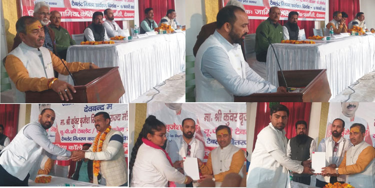 دیوبند، دیوبند کے مشہور ومعروف یونانی طب کا ادارہ جامعہ طبیہ میڈیکل کالج کے زیر اہتمام چلنے والے فارمیسی کے ادارہ جامعہ کالج آف فارمیسی دیوبند کے 60طلبہ وطالبات کے درمیان صوبائی اسکیم کے تحت ٹیب لیٹ ریاستی وزیر کنور برجیش کے ہاتھوں تقسیم کئے گئے۔ اس سلسلہ میں ادارہ کے احاطہ میں ایک پروقار تقریب منعقد کی گئی ۔ اس موقع پر وزیر مملکت کنور برجیش سنگھ نے طلبہ سے خطاب کرتے ہوئے کہا کہ فارمیسی کے طلبہ وطالبات کے درمیان صوبائی وزیر اعلیٰ یوگی آدتیہ ناتھ کے اعلان اور اسکیم کے تحت ٹیب لیٹ تقسیم کرتے ہوئے انہیں بے حد خوشی ہورہی ہے ۔ انہوں نے کہا کہ جامعہ طبیہ دیوبند جہاں یونانی طب کے فروغ میں اہم رول ادا کررہا ہے وہیں جامعہ کالج آف فارمیسی کے ذریعہ سے فارمیسی کے میدان میں بھی نمایاں خدمات انجام دے رہا ہے۔ کنور برجیش سنگھ نے اپنے ہاتھوں سے فارمیسی کے 60طلبہ وطالبات کے درمیان ٹیب لیٹ تقسیم کئے اور نصیحت کرتے ہوئے کہا کہ اپنے والدین ، کالج اور حکومت کی جانب سے آپ کو جو سہولیات مہیا کرائی جارہی ہیں ان سے صدفیصد استفادہ کرتے ہوئے اپنی تعلیمی منزل کی جانب بڑھتے رہئے ۔ ہم سب کی نیک خواہشات آپ کے ساتھ ہے۔ انہوں نے کہا کہ صوبائی حکومت بلاکسی تفریق کے سب کی مدد کررہی ہے اور یکساں طور پر مواقع فراہم کررہی ہے۔ انہوں نے وزیر اعلیٰ اترپردیش یوگی آدتیہ ناتھ کی قیادت میں اترپردیش حکومت کی ترقیاتی کاموں پر گفتگو کرتے ہوئے کہا کہ ریاست کی تاریخ میں فروری ماہ میں ایک بین الاقوامی سرمایہ کاری کانفرنس کا انعقاد ہوا ہے جس میں بین الاقوامی سرمایہ کاروں نے تقریباً 35لاکھ کروڑ کی سرمایہ کاری کے ایم او یو حکومت کے ساتھ دستخط کئے۔ اتنی بڑی سرمایہ کاری ریاستی حکومت کی تاریخ میں کبھی نہیں ہوئی ہے۔ انہوں نے کہا کہ اس سرمایہ کاری سے ریاست میں تقریباً ایک کروڑ ملازمتوں کا موقع نوجوانوں کو ملے گا۔ کنور برجیش سنگھ نے کہا کہ اس ملک کے نوجوان تعلیم کے حصول کے ساتھ اپنے ملک اور انسانیت کی خدمت کا جذبہ رکھتے ہیں وہ ہمیشہ کامیاب ہوکر اپنے بڑوں اساتذہ اور ملک کا نام روشن کرتے ہیں۔انہوں نے طلبہ سے مخاطب ہوتے ہوئے کہا کہ وہ اپنے والدین ، اپنے اساتذہ اور تعلیمی ادارہ کو ہمیشہ یاد کریں کیوں کہ اس ادارہ سے نکلنے کے بعد آپ لوگ ڈاکٹری پیشہ سے وابستہ ہوںگے اور آپ پر بڑی ذمہ داری عائد ہوگی کیوں کہ مریض اللہ تعالیٰ کے بعد ڈاکٹر پر ہی یقین رکھتے ہیں۔ آپ لوگ اپنے پیشہ کو انسانی خدمت کے جذبہ کے ساتھ کام کریں۔ جامعہ طبیہ دیوبند کے سکریٹری ڈاکٹر اختر سعید نے حکومت کی جانب سے ان کے کالج کے طلبہ وطالبات کو ٹیب لیٹ دیئے جانے پر مسرت کا اظہار کرتے ہوئے صوبائی وزیر اعلیٰ یوگی آدتیہ ناتھ اور وزیر مملکت کنور برجیش سنگھ کا شکریہ اد ا کیا او رکہا کہ وہ ذاتی طور پر اور کالج انتظامیہ اس بات کے معترف ہیں کہ مرکزی اور صوبائی حکومت کی تعلیم کی طرف پوری توجہ ہے اور بغیر کسی بھید بھاؤ، سب کے لئے اعلیٰ ومعیاری تعلیم کے لئے بہتر سے بہتر اقدامات کئے جارہے ہیں ۔ انہوں نے کہا کہ ملک کے وزیر اعظم نریندر مودی کی جانب سے بھی تعلیم پر بھرپو رتوجہ دی جارہی ہے ۔ انہوں نے یاد دلایا کہ گزشتہ سال بھی وزیر اعلیٰ اترپردیش یوگی آدتیہ ناتھ کے ہاتھوں ہمارے ادارے کے طلبہ وطالبات کو ٹیب لیٹ دیئے گئے تھے ۔ ڈاکٹر اختر سعید نے وزیر مملکت کنور برجیش سنگھ کا شکریہ ادا کرتے ہوئے کہا کہ جامعہ طبیہ دیوبند اور اس کے زیر اہتمام جامعہ فارمیسی میں ہونے والی تعلیم اور اس کے ذریعہ کئے جانے والے بہت سے اقدامات کو عملی طو رپر انجام دینے میں کنور برجیش سنگھ کا بھرپور تعاون اور توجہ سے ہمیشہ ہماری حوصلہ افزائی ہوئی ہے جس کے لئے ہم سب اور ادارہ ان کا ہمیشہ ممنون رہے گا۔ انہوں نے صوبائی وزیر اعلیٰ اور وزیر مملکت کنور برجیش سنگھ کا شکریہ ادا کرتے ہوئے کہا کہ انہیں امید ہے کہ آئندہ بھی ان کے اداروں اور طلبہ کی اسی طرح حوصلہ افزائی کی جاتی رہے گی۔ اس موقع پر جامعہ طبیہ دیوبند کے پرنسپل ڈاکٹر ناصر علی خان، وائس پرنسپل