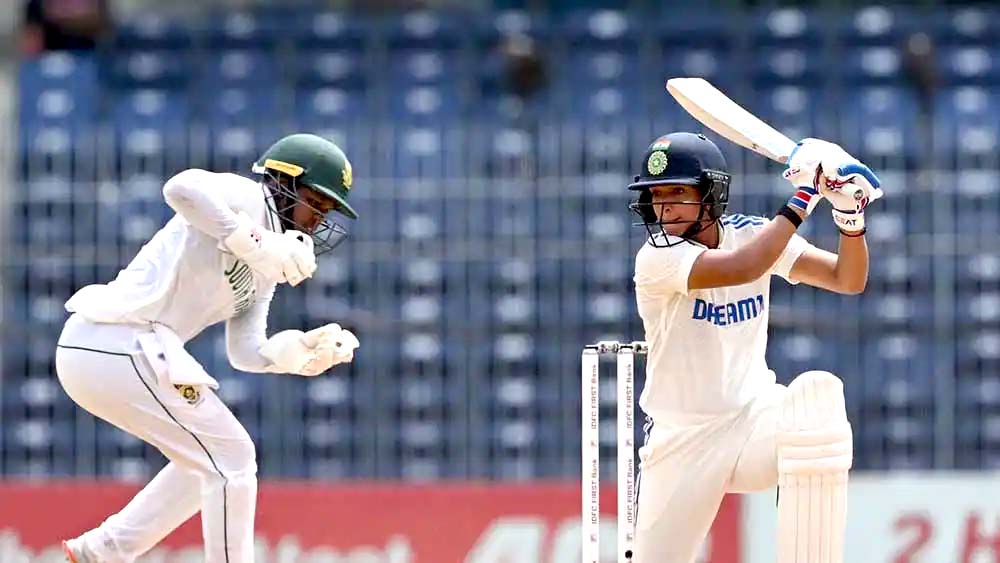 چنئی (یو این آئی) اسنیہ رانا (آٹھ وکٹ) کے شاندار اسپیل کی بدولت ہندوستانی خواتین ٹیم نے بلے بازی کے لئے مفید چیپاک کی فلیٹ پچ پر مہمان جنوبی افریقہ کو پہلی اننگ میں 266 رنز پر ڈھیر کر کے 337 رنز کی برتری حاصل کر لی ہے۔آج صبح جنوبی افریقہ نے چار وکٹ پر 236 رنزکے کل کے اسکور سے آگے کھیلنا شروع کیا۔ کل کھیل کے اختتام پر، ماریزان کاپ (69) اور نادین ڈی کلرک (27) نے اننگ کو آگے بڑھایا۔ اسنیہ رانا نے ابتدائی اسپیل میں ماریزان کاپ (74) کو بولڈ کرکے جنوبی افریقہ کو پہلا جھٹکا دیا۔ اس کے بعد تو جنوبی افریقی ٹیم صرف 30 رنز کا اضافہ کرکے تاش کے پتوں کی طرح بکھرگئی۔ نادین ڈی کلرک (39)، سینالو جافتا (0)، اینری ڈرکسن (5)، مساباتا کلاس (1) اور نونکولیکو ملابا (2) رنز بنانے کے بعد آؤٹ ہوئیں۔ جنوبی افریقہ کی پوری ٹیم 266 رنز پر سمیٹ گئی۔ ہندوستان کو پہلی اننگ میں بنائے گئے (چھ وکٹوں پر 603 اننگ ڈکلیئر) کے اسکور کی بنیاد پر 337 رنوإ کی برتری حاصل ہوئی ہے۔ہندوستان کے لیے اسنیہ رانا نے 25.3 میں 77 رنز دے کر آٹھ وکٹیں حاصل کیں۔ دیپتی شرما کو 21 اوور میں 47 رن دے کر دو وکٹ ملے۔