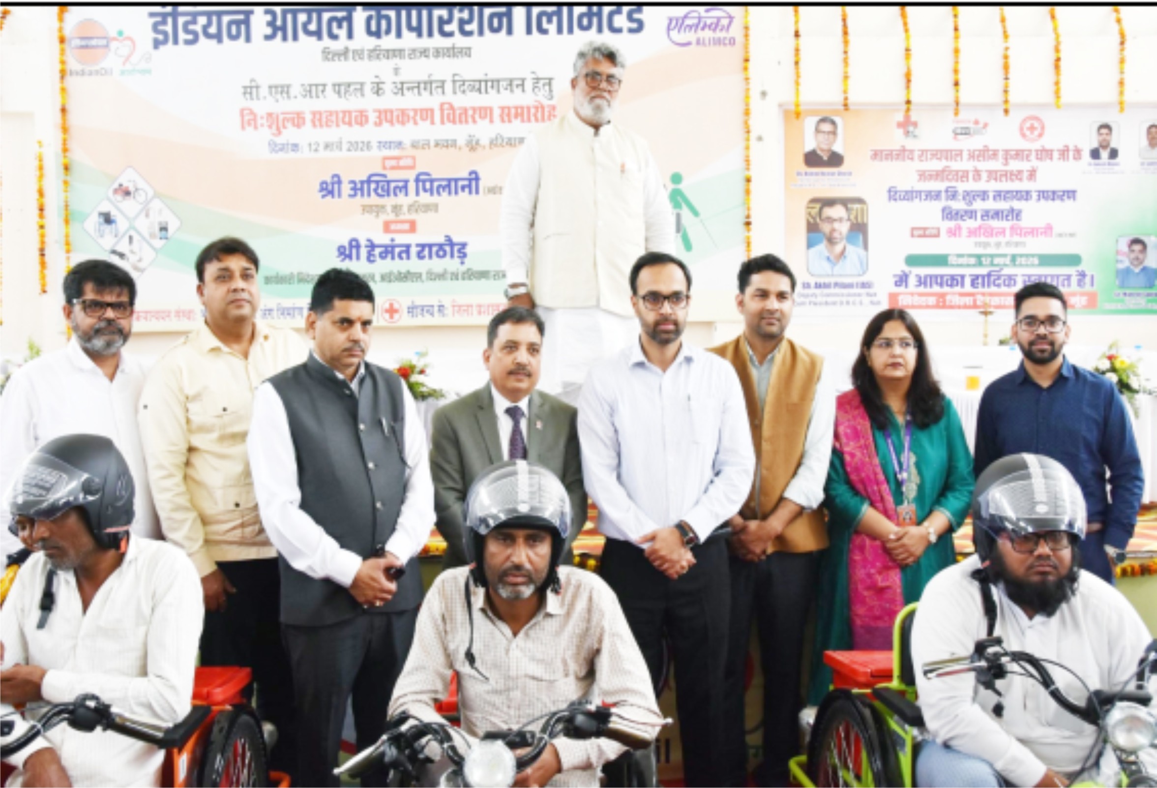 نوح،میوات،سماج نیوز سروس: انڈین آئل کارپوریشن لمیٹڈ کے کارپوریٹ سماجی ذمہ داری کے اقدام کے ایک حصے کے طور پر، نوح ضلع میں معذور افراد میں مفت معاون آلات تقسیم کیے گئے۔ بال بھون،نوح میں منعقدہ ایک تقریب میں 189 معذور مستفیدین کو کل 92.63 لاکھ 414 روپے مالیت کے 259 معاون آلات ملے۔ڈپٹی کمشنر اکھل پیلانی اس تقریب کے مہمان خصوصی تھے، جب کہ پروگرام کی صدارت مسٹر ہیمنت راٹھور، ایگزیکٹو ڈائریکٹر اور انڈین کارپوریشن کے ریاستی سربراہ Limited کارپوریشن نے کی۔اس موقع پر ڈپٹی کمشنر اکھل پیلانی نے کہا کہ معذور افراد کو بااختیار بنانے کے لیے حکومت اور سماجی تنظیموں کے درمیان مشترکہ اقدامات ناگزیر ہیں۔ انہوں نے کہا کہ ہریانہ حکومت معذور افراد کی فلاح و بہبود کے لیے پنشن، تعلیم، صحت اور روزگار سے متعلق متعدد اسکیمیں چلا رہی ہے۔ ایسے پروگرام معذور افراد کو بااختیار بنانے اور ان کی زندگیوں کو مزید آرام دہ بنانے میں اہم کردار ادا کرتے ہیں۔ انہوں نے انڈین آئل کارپوریشن لمیٹڈ اور ALIMCO کے اس اقدام کی تعریف کرتے ہوئے کہا کہ اس سے ضلع کے معذور لوگوں کو بڑی راحت ملے گی۔ انہوں نے کہا کہ معاون آلات نہ صرف معذور افراد کے معیار زندگی میں مثبت تبدیلیاں لاتے ہیں بلکہ انہیں خود انحصار بنانے میں بھی اہم کردار ادا کرتے ہیں۔ تقسیم کی یہ تقریب سماجی شمولیت اور معذور افراد کو بااختیار بنانے کی جانب ایک اہم قدم ثابت ہوگی۔CSR اسکیم کے تحت، ALIMCO، جو حکومت ہند کا ایک ادارہ ہے، نے ضلع نوح کے مختلف علاقوں سے 189 پہلے سے شناخت شدہ معذور مستحقین کو مختلف قسم کے معاون آلات فراہم کیے ہیں۔ ان میں 116 موٹرائزڈ ٹرائی سائیکلیں، 9 ٹرائی سائیکلیں، 22 فولڈنگ وہیل چیئرز، 44 بیساکھییں، 2 واکنگ اسٹکس، 11 ٹی ایل ایم کٹس، 26 بی ٹی ای ہیئرنگ ایڈز، 2 جوائس اسٹک، 2 سی پی کرسیاں، 7 قابل رسائی چھڑی، اور مصنوعی اعضاء تقسیم کیے جانے والے 16 افراد میں شامل ہیں۔پروگرام سے پہلے، ALIMCO نے دسمبر 2025 کے دوران نوح اور آس پاس کے علاقوں میں ٹیسٹنگ اور رجسٹریشن کیمپوں کا انعقاد کیا، جہاں معذور افراد کی شناخت کی گئی اور آلات کے لیے ان کا انتخاب کیا گیا۔اس پروگرام میں مسز رشمی کوشل، ڈپٹی جنرل منیجر (ہیومن ریسورسز)، آئی او سی ایل دہلی اور ہریانہ اسٹیٹ آفس، حکومت ہند کی سماجی انصاف اور بااختیار بنانے کی وزارت سے مسٹر پنکج دویدی، حج کمیٹی کے سابق چیئرمین مسٹر اورنگزیب، ریڈ کراس کے سکریٹری مسٹر مہیش گپتا، مختلف محکموں کے افسران، اور ڈی آئی جی نے شرکت کی۔