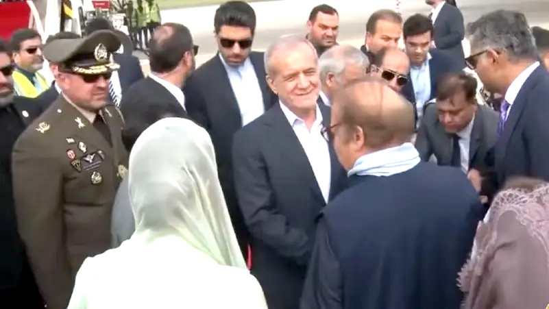 لاہور:ایران کے صدر مسعود پزشکیان دو روزہ دورہ پر پاکستان پہنچ گئے، ان کا طیارہ لاہور ایئرپورٹ پر اترا جہاں ان کا پرتپاک استقبال کیا گیا۔ایرانی صدر مسعود پزشکیان اعلیٰ سطح کے وفد کے ہمراہ دو روزہ سرکاری دورے پر لاہور پہنچے جہاں صدر مسلم لیگ ن نواز شریف اور وزیر اعلیٰ پنجاب مریم نواز نے ان کا پرتپاک استقبال کیا جس کے بعد تینوں شخصیات ایک ہی گاڑی میں ایئر پورٹ سے روانہ ہوئیں۔ایران کے صدر مسعود پزشکیان کو لاہور ایئر پورٹ پر بچوں نے گلدستے پیش کیے جس پر ایرانی صدر نے بچوں سے اظہار شفقت کیا اور پرتپاک استقبال پر صدر مسلم لیگ (ن) میاں نواز شریف اور وزیراعلیٰ پنجاب مریم نواز کا شکریہ ادا کیا۔ایرانی صدر کے استقبال کے لیے علامہ اقبال انٹرنیشنل ایئر پورٹ پر بھرپور تیاری کی گئی تھی، ایئر پورٹ کو پاکستان اور ایران کے پرچموں سے سجایا گیا تھا اور ایرانی صدر کے استقبال کے لیے ریڈ کارپٹ بھی بچھایا گیا تھا۔ایرانی صدر کے ساتھ ایرانی وزیر خارجہ عباس عراقچی سمیت کئی وزرا اور اعلیٰ حکام کا وفد بھی آیا ہے۔ایرانی صدر مزار اقبال پر حاضری کے بعد آج شام اسلام آباد کے لیے روانہ ہو جائیں گے، لاہور بھر میں سکیورٹی سخت کر دی گئی ہے، آج ایران کے صدر مسعود پزشکیان کے اعزاز میں پرتکلف ضیافت بھی دی جائے گی۔واضح رہے کہ ایران کے صدر پہلے سرکاری دورے پر پاکستان پہنچے ہیں، ایرانی صدر کی آج شام ہی صدر آصف علی زرداری اور سپیکر قومی اسمبلی سردار ایاز صادق سے ملاقاتیں شیڈول ہیں۔ایرانی صدر نے شاعر مشرق علامہ اقبال کے مزار پر حاضری دی۔ وزیر اعلیٰ پنجاب مریم نواز اور دیگر وزرا بھی اس موقع پر موجود تھے۔پاکستان کے دورے پر روانگی سے قبل میڈیا سے گفتگو کرتے ہوئے ایرانی صدر مسعود پزشکیان کا کہنا تھا دورے کا مقصد تجارتی اور اقتصادی تعلقات کو فروغ دینا ہے۔ایرانی صدر کا کہنا تھا پاکستان کے دورے کے دوران سرحدی سلامتی اور علاقائی امن کے امور زیر بحث آئیں گے، سرحدی منڈیاں اور رابطے باہمی تعاون کی نئی راہیں کھول سکتے ہیں، کوشش ہے کہ دو طرفہ تجارت کا حجم 10 ارب ڈالر تک پہنچے۔