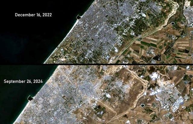 سیٹلائٹ امیجز سے پتہ چلتا ہے کہ کس طرح غزہ کو ایک سال میں ملبے کے ڈھیر میں تبدیل کیا گیا جس میں اب تک 42 ہزار سے زائد فلسطینی شہید اور 98 ہزار کے قریب زخمی ہوچکے ہیں۔