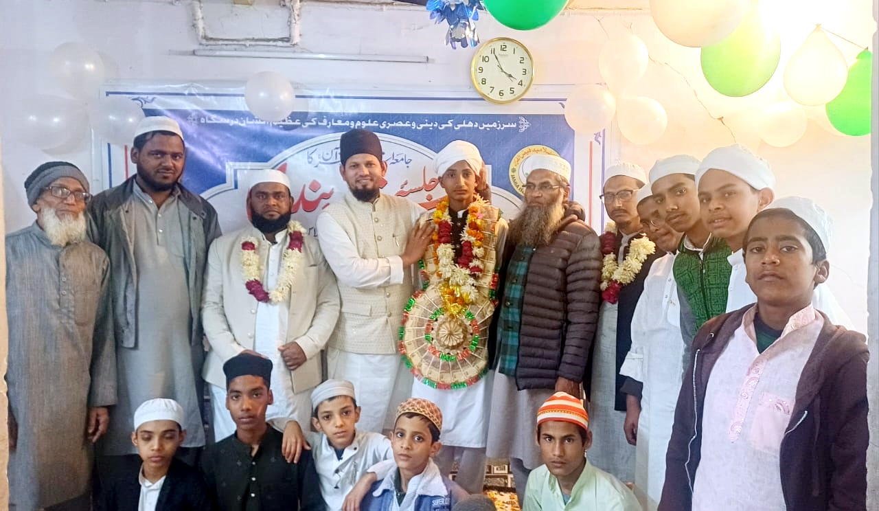 نئی دہلی،پریس ریلیز،ہماراسماج: جامعہ اسلامیہ فیض القرآن نبی کریم میںتکمیل حفظ قرآن کریم پر جلسۂ دستار ندی کا انعقاد کیا گیا۔ جلسہ کا آغاز عبد الرزاق بن عبد الواحدکی تلاوت قرآن کریم سے ہوا اور نعت پاکؐ کا نذرانہ قاری امجد علی استاذ جامعہ اسلامیہ فیض القرآن نے پیش کیا۔ جلسۂ کی صدارت جامعہ رحیمیہ مہندیان کے شیخ الحدیث مولانا محمد صابر علی ظفر قاسمی اور نظامت مدرسہ کے مہتمم قاری قمر عالم نے کی۔ اس موقع جمعیت علماء ضلع چاندنی چوک کے صدر مولانا عبد السبحان قاسمی مہمان خصوصی کی حیثیت سے شریک تھے، انہوںنے کہا کہ ہم سب کو خلوص ، ایمانداری اور للہیت کے جذبہ کے ساتھ دین کی خدمت کرنے کی ضرورت ہے۔ انہوں نے کہا کہ دہلی کے نبی کریم علاقے میں کئی مدارس مہمانان رسولؐ کی علمی پیاس بجھا رہے ہیں ،میری اپیل ہے کہ سب متحد ہو کرطلبہ کی علمی اور اخلاقی تربیت پر توجہ مرکوز کریں، اس کے لیے ضروری ہے کہ ہمارا آپسی رابطہ مضبوط رہے اور باہمی مشورے کا سلسلہ منقطع نہ ہو ۔اس موقع پر مولانا غلام نبی،مولانا شمشاد قاسمی، مولانا انیس الرحمٰن ، حافظ سہیل، مولانا وسیم قاسمی وغیرہ نے خطاب کیا۔اس موقع پر قاری قیام الدین، مولانا علی اکبر، قاری مبارک، پرویز، حافظ اکبر، مفتی زکریا قاسمی، قاری نجم الہدیٰ، جامعہ رحیمیہ مہندیان کے استاذ مولانا محمد اسماعیل آز، قاری فیضان اور مدرسہ کے اساتذہ وطلبہ وطالبات موجو دتھے۔اس موقع پر تکمیل حفظ قرآن کریم کا شرف حاصل کرنے والے حافظ عبد الرازق بن عبد الواحد کی علمائے کرام کے ہاتھوں دستار بندی کی گئی۔ جامعہ اسلامیہ فیض القرآن نبی کریم کے مہتمم قاری قمر عالم نے مہمانوں اور عوام کا شکریہ ادا کیا۔ مولانا محمد صابر علی ظفر قاسمی کی دعا پر جلسہ اختتام پذیر ہوا۔