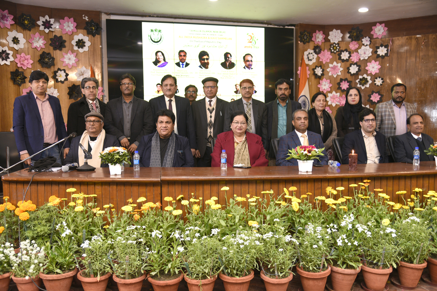 A++ جیسے باوقار ادارے کی جانب سے جامعہ ملیہ اسلامیہ کو NAACنئی دہلی: آزاد، سیکولر اور جمہوری ہندوستان کی تعمیر میں جامعہ ملیہ کا گریڈ دیاجانا پوری جامعہ برادری کے لیے نہایت اعزاز کی بات ہے۔ آج بیوروکریسی، عدلیہ، میڈیا اور تمام اہم شعبوں میں فرزندانِ جامعہ بے مثال کارنامے انجام دے رہے ہیں۔ ان خیالات کا اظہار وائس چانسلر جامعہ ملیہ اسلامیہ پدم شری پروفیسر نجمہ اختر نے یومِ جمہوریہ کے موقع پر جامعہ ملیہ اسلامیہ کے زیرِ اہتمام شاندار اور وسیع انجینئرنگ ہال میں منعقدہ آل انڈیا مشاعرہ اور کوی سمّیلن میں کیا۔ مہمانِ خصوصی جوائنٹ سکریٹری وزارت برائے بھاری صنعت ڈاکٹر حنیف قریشی (آئی پی ایس) نے کہا کہ بحیثیت جامعی میں اپنے مادرِ علمی جامعہ ملیہ اسلامیہ کے لیے نہایت جذباتی ہوں اور یہ ایک حقیقت ہے کہ میں آج جو کچھ ہوں، وہ جامعہ ہی کی دین ہے۔ میں آج بھی جب جامعہ کے کیمپس میں داخل ہوتاہوں کہ تو محسوس ہوتا ہے کہ اپنے گھر میں آگیا ہوں۔ مہمانِ اعزازی ڈپٹی سکریٹری وزارت برائے ثقافت ڈاکٹر شاہ فیصل (آئی اے ایس) نے نیک خواہشات کا اظہار کرتے ہوئے کہا کہ جامعہ آج قومی اور بین الاقوامی سطح پر ایک قابلِ رشک ادارہ بن گیا ہے۔ مہمانِ اعزازی سابق صدر شعبۂ ہندی، جامعہ ملیہ اسلامیہ پروفیسر اشوک چکردھر نے جامعہ کی دل کش تہذیبی و ثقافتی فضا کی تحسین کرتے ہوئے کہا کہ میں جامعہ کو گنگاجمنی تہذیب کی آتما سمجھتاہوں۔