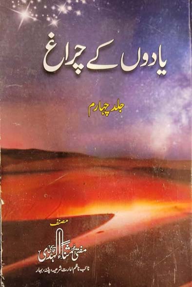کبھی کبھی ایسا لگتا ہے کہ اسپ تازی کسی درجہ میں مجروح ہوا ہے ۔ یادوں کے چراغ کی یہ چوتھی جلد ہے جس میں علماء مشائخ وحفاظ کرام اور شعراءوادباءودانشورا ن قوم وغیرہ کے خاکے ہیں۔مولانامفتی محمد ثناءالہدی قاسمی معروف ادیب اور صحافی ہیں ہندوستان کے اخبارات میں کثرت سے ان کے مضامین شائع ہوتے ہیں اور نگاہ تحسین سے دیکھے جاتے ہیں ان کے اندر ملت کا درد بھی ہے، قلم کا سوز بھی ہے، فکر کی حرارت بھی ہے، مزاج کا توازن بھی ہے، میری نگاہ نارسا ان کے مضامین کو تلاش کرتی رہتی ہے اور جب رسائی ہوجاتی ہے تو اہتمام سے اسے پڑھتی ہے میں نے جو لکھا ہے اس میں کوئی مبالغہ نہیں ہے بسا اوقات باہمی تبادلہ خیال بھی ہوا ہے اورکبھی کسی اہم موضوع پر میں نے ان کے فکر کو زرخیز اور قلم کو مہمیز کرنے کی کوشش بھی کی ہے ۔میں نے ہمیشہ ان سے اس لئے بھی رابطہ کرنے کی کوشش کی ہے کہ وہ ملت کی فکر ی رہنمائی کرسکیں ، مجھے ہندوستان کی ملی تنظیموں سے ایک گونہ مایوسی ہے نہ کہیں تخیل کی لالہ زاری نہ کہیں فکر کی تازہ کاری نہ کہیں ہمت اورحوصلہ نہ کہیں تازہ ولولہ، نہ کہیں ندرت خیال ، بس تار عنکبوت کی طرح بوسیدہ خیالات اور حد سے بڑھی ہوئی عقیدتوں کی پرچھائیاں نہ جوش عمل نہ جدت کردار، ایسی ازکار رفتہ قیادت کس کام کی