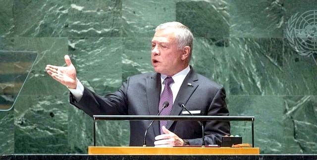 عمان: اردن کے بادشاہ شاہ عبداللہ دوم نے اقوام متحدہ کی جنرل اسمبلی کے اجلاس سے خطاب میں فلسطینیوں کو جبری طور پر اردن دھکیلنے کو جنگی جرم قرار دیدیا۔عالمی خبر رساں ادارے کے مطابق شاہ عبداللہ دوم نے اقوام متحدہ کے اجلاس میں کہا کہ اردن کے فلسطینیوں کا متبادل گھر ہونے کا تصور کبھی حقیقت ثابت نہیں ہوگا۔شاہ عبد اللہ دوم نے مزید کہا کہ اردن کے فلسطینیوں کا دوسرا گھر ہونے کا تصور انتہا پسندوں نے عام کیا ہے جس کی وجہ سے ہمارے ملک کو جنگ کے دہانے پر دھکیلنے کی کوشش کی گئی ہے۔شاہ عبد اللہ دوم نے اپنی تقریر میں عالمی برادری سے غزہ میں جنگ بندی کا مطالبہ کرتے ہوئے کہا کہ فلسطینیوں کو انسانی ہمدردی کی بنیادوں پر خوراک اور دیگر اشیائے ضروریہ کی فراہمی کو تیز تر کیا جائے۔اردن کے بادشاہ عبداللہ دوم نے مغربی کنارے میں جاری جارحیت کو ختم کرنے اور فلاڈیلفی سمیت دیگر راہداریوں کو کھولنے کے معاملے کے جلد از جلد حل پر بھی زور دیا۔واضح رہے کہ اسرائیل نے غزہ جانے والی تمام راہداریوں کی ناکہ بندی کر کے خوراک، پانی اور ادویات سمیت ہر چیز کی ترسیل روک رکھی ہے جب کہ اسرائیلی بمباری میں شہید ہونے والے فلسطینیوں کی تعداد 94 ہزار سے تجاوز کرگئی۔