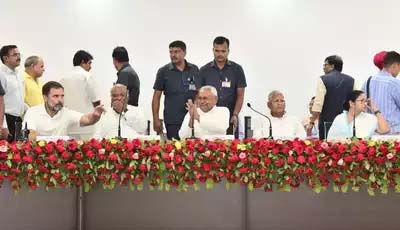 نئی دہلی /پٹنہ : بہار کے وزیر اعلیٰ نتیش کمار کی اپیل پر آج پٹنہ میں اپوزیشن جماعتوں کی ایک اہم میٹنگ ہوئی ،جس میں ملک بھر کی بی جے پی مخالف 15 پارٹیوں نے شرکت کی۔ تقریباً ڈھائی گھنٹہ چلی اس میٹنگ میں بی جے پی کے خلاف اتحاد قائم کرنے پر تبادلہ خیال ہوا۔ وزیر اعلیٰ نتیش کمار نے پٹنہ میں اپوزیشن پارٹیوں کی میٹنگ ختم ہونے کے بعد ایک مشترکہ پریس کانفرنس سے خطاب کیا۔ اس دوران انھوں نے نامہ نگاروں سے کہا کہ ایک ساتھ لوک سبھا انتخاب لڑنے پر سبھی پارٹیوں میں اتفاق قائم ہو گیا ہے۔ اس میٹنگ کے بعد مزید ایک میٹنگ جلد ہونے والی ہے جس میں کئی اہم فیصلے لیے جائیں گے۔کانگریس کے قومی صدر ملکارجن کھڑگے نے اپوزیشن اتحاد کا عزم ظاہر کیا اور کہا ’’نفرت کی سیاست کے خلاف ہم لوگ متحد ہو کر آگے بڑھیں گے‘‘۔بتا دیں کہ اجلاس میں 15 سے زائد اپوزیشن جماعتیں شریک ہوئیں۔ اپوزیشن کے اجلاس میں شامل ہونے سے پہلے راہل گاندھی نے کہا کہ کانگریس تلنگانہ، مدھیہ پردیش، چھتیس گڑھ، راجستھان میں جیتے گی۔ بی جے پی کا مقصد کچھ لوگوں کو فائدہ پہنچانا ہے۔ کانگریس غریبوں اور ضرورت مندوں کے لیے کام کرتی ہے۔انہوں نے کہا کہ بی جے پی کو شکست دینے کا واحد راستہ اتحاد ہے۔پٹنہ میں اپوزیشن پارٹیوں کی میٹنگ کے بعد مشترکہ پریس کانفرنس سے خطاب کرتے ہوئے بہار کے سابق وزیر اعلیٰ لالو پرساد یادو نے لوک سبھا انتخاب میں بی جے پی کو شکست فاش دینے کا اپنا عزم ظاہر کیا۔ انھوں نے میڈیا سے مخاطب ہوتے ہوئے کہا کہ ’’میں کئی دنوں کے بعد آپ سے بات کر رہا ہوں۔ اب میں بالکل فٹ ہوں، اور میں انھیں (بی جے پی کو) بھی فٹ کر دوں گا۔‘‘ انہوں نے کہا کہ بی جے پی ملک کو تقسیم کر رہی ہے اور نفرت اور تشدد پھیلا رہی ہے جبکہ کانگریس ملک کو متحد کر رہی ہے۔ وہیں کانگریس صدر ملکارجن کھڑگے نے بھی پٹنہ میں اپوزیشن کے اجلاس سے پہلے پارٹی کارکنوں سے خطاب کیا۔ مغربی بنگال کی وزیر اعلیٰ ممتا بنرجی نے پریس کانفرنس میںخطاب کرتے ہوئے کہ اکہ میٹنگ اچھی ہوئی اسکی شروعات پٹنہ سے ہوئی ہے،اس میں تین باتیں حل ہوئی ہیں ۔پہلی یہ کہ ہم سب ایک ہیں ،دوسرے یہ کہ ہمیں اپوزیشن نہ بولا جائے ،ہم بھی بھارت ماتا کی جے کرتے ہیں ،منی پور جلنے سے ہمارے اندر بھی آگ ہے۔انہوںنے کہا اگر اگلی بار بی جے پی اقتدار میں آئی تو ملک میں انتخاب نہیں ہوگا!۔ اپوزیشن کی میٹنگ پربی جے پی میں بوکھلاہٹ ہے اور تلملائی ہوئی ہے ۔ اپنا ردعمل دیتے ہوئے مرکزی وزیر اسمرتی ایرانی نے کہا کہ یہ اتحاد اپنے فائدے کے لئے ہے ،جبکہ بھارت نشانے پر ہے ۔انہوںنے اپوزیشن جماعتوں کو نشانے پر لیتے ہوئے کہا کہ جو ایک دوسرے کو ایک آنکھ بھی نہیں دیکھنا نہیں پسند کرتے وہ آج میٹنگ کے لئے اکھٹا ہوئے ہیں۔پٹنہ میں بی جے پی کے لیڈر سشیل مودی نے کہا کہ اس میٹنگ میں کچھ بھی نکل کر سامنے نہیں آیا ،کھودا پہاڑ نکلی چوہیا،سشیل مودی نے کہا کہ اگلی میٹنگ کہاں ہوگی اور کہاں ہوگی اس کا کچھ نہیں بتایا گیا۔اپوزیشن کی میٹنگ میں راہل اور کھڑگے کے علاوہ سماج وادی لیڈر اکھلیش سنگھ یادو ،ادھو ٹھاکرے ،شرد پوار ،سیتا رام یچوری سمیت تقریبا 27 سرکردہ رہنمائوںنے شرکت کی اور اپنے خیالات کا اظہار کیا۔اب شملہ میں 12جولائی کو اگلی میٹنگ ہوگی جس میں سیٹوں کے بنٹوارےپر بات ہو سکتی ہے۔ادھر اویسی کے میٹنگ میں شامل نہیں ہونے پر ایک سوال کے جواب میں انہوںنے کہا کہ ’’ابتدائے عشق ہے روتا ہے کیا‘‘۔۔۔انہوںنے کہا کہ اپوزیشن کا ٹریک ریکارڈ نہیں دیکھا ہے کیا ،اویسی نےکہا،کہ کیا شیو سینا اب سیکولر ہوگئی ہے! ،یہ وہی ادھو ٹھاکرے ہیں کہ جنہوںنے بابری مسجد گائے جانے پروزیر اعلیٰ رہتے ہوئے اسمبلی میں کہا تھا کہ’’ وہ بابری مسجد گرنے پر بے حد فخر محسوس کرتے ہیںـ‘‘۔انہوںنے پلٹ وار کرتے ہوئے کہا کہ’’ یہ وہی کجریوال ہیں جنہوںنے لوک سبھا کے اندر 370 ہٹائے جانےکی حمایت کی تھی ‘‘ قابل ذکرہے کہ قبل ازیں کانگریس صدر ملکارجن کھرگے اور پارٹی لیڈر راہل گاندھی کےاپوزیشن لیڈروں کی میٹنگ کے لیے پٹنہ پہنچنے پر بہ