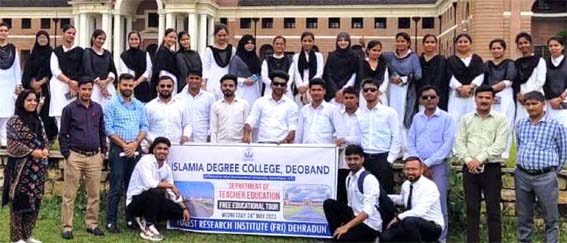 دیوبند : 2 ؍جون،سماج نیوز سروس: دیوبند میں ہائر ایجوکیشن کے قدیم و معروف ادارہ اسلامیہ ڈگری کالج کی جانب سے بی – ایڈ اور بی ٹی سی ڈیپارٹمینٹ کے طلبہ و طالبات کے ایک فری ایجوکیشن ٹور کا اہتمام کیاگیا ۔ فری ایجوکیشن کا یہ ٹور دہرادون کے فاریسٹ ریسرچ انسٹی ٹیوٹ بھیجا گیا ۔ اس ٹور کو بھیجنے کا خاص مقصد طلبہ و طلبات کو فاریسٹ ریسرچ انسٹی ٹیوٹ دہرادون میں موجود میوزیم میں مختلف اور نایاب قسم کے پیڑ پودوں سے متعلق بیش قیمت معلومات فراہم کراناتھا ۔ واضح ہوکہ 1878 میں امپیریل فاریسٹ اسکول کے نام سے اس کا آغاز کیاگیا تھا ، جس کے بعد 1906 میں یہ ادارہ فاریسٹ ریسرچ انسٹی ٹیوٹ کے طورپر تبدیل کردیا گیا ۔ جس مخصوص عمارت سے فاریسٹ ریسرچ انسٹی ٹیوٹ دہرادون کی پہچان ہے اس کا افتتاح باقاعدہ 1929 میںکیاگیا ۔ موجودہ وقت میں یوجی سی نے اس کے تمام کورسوں کو ڈیمڈ یونیورسٹی کا درجہ دے رکھاہے۔ اسلامیہ ڈگری کالج کے بی ایڈ اوربی ٹی سی شعبے کے انچارج ڈاکٹر مزمل قمر نے طلبہ و طالبات کو فاریسٹ ریسرچ انسٹی ٹیوٹ دہرادون کے بارے میں تاریخی معلومات اور تفصیلات بتاتے ہوئے کہا کہ یہ ایک مخصوص ریسرچ انسٹی ٹیوٹ ہے جس میں مختلف اور نایا ب قسم کے پیڑ پودوں سے متعلق ریسرچ کا کام کیاجاتاہے ۔ انہوں نے بتایا کہ اس طرح کی غیر تدریسی سرگرمیوں کی مدد سے بھی طالب علموں میں تخلیقی صلاحیتیں پیداہوتی ہیں۔ اس لئے ہر ایک طالب علم اس طرح کی معلوماتی سرگرمیوں لازمی طورپر شرکت کرنی چاہئے ۔ یہ فری ایجوکیشن ٹور سینئر پروفیسر ڈاکٹر انور پاشا ، ڈاکٹر فخرالدین ، ڈاکٹر پروین یادو اور محترمہ سعدیہ کی قیادت میں دہرادون پہنچا۔ یہ ٹور آرتی دیوی، عذرا، پوجا ، گریمہ ، شوانی ، مانسی ، سرشٹی بنسل ،حلیمہ ، کاجل ، شبھم،شاکر، روفیدا، نوین ،اعظم ،شہناز ، ترمیم شباہت ،سواتی ، پرویش ، ارچنا، اسمرتی ، شاہین ، انشل شرما، رشبھ، بھاؤنا ، مستقیم ، دھرو، آشا، حسینہ، شاداب ، عارف اور مونیکا وغیرہ طلبہ وطالبات پر مشتمل تھا ۔