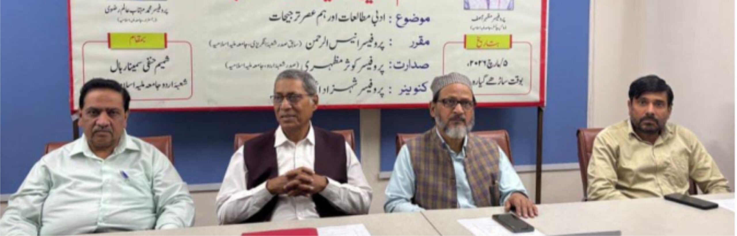 ارریہ :- ( مشتاق احمد صدیقی) شعبۂ اردو جامعہ ملیہ اسلامیہ کی علمی تاریخ میں ایک روشن باب کا اضافہ ہوا، جب صدر شعبہ پروفیسر کوثرمظہری کی درخواست قبول کرتے ہوئے وائس چانسلر پروفیسر مظہر آصف نے کلیم الدین احمد کے نام سے منسوب ایک نئے سالانہ یادگاری خطبہ کو منظوری عطا کی۔ پہلا کلیم الدین احمد یادگاری خطبہ ممتاز ادیب و دانشور اور ترجمہ نگار پروفیسر انیس الرحمٰن نے ’’ ادبی مطالعات اور ہم عصر ترجیحات ‘‘ کے عنوان سے پیش کیا، انھوں نے کہا کہ ارسطو کے نزدیک ادب تخیل کی بنا پر خلق کردہ حقیقت کے لفظی اظہار کا نام ہے۔ حقیقت ، تخیل اور تجسیم کاری کے باہمی ربط سے کسی زبان میں ادب کی تخلیق عمل میں آتی ہے۔ ادب کی تعریف متعین کرنے میں ادبی تھیوری پیش کرنے والوں نے بہت زیادتی کی ہے۔ در اصل تھیوری کے یہ علم بردار ایک نوع کے فلسفی ہیں جو لفظی گورکھ دھندے میں معانی سے اکثر اجتناب کر جاتے ہیں۔ انھوں نے مزید کہا کہ ادبی ترفع کی چار منزلیں ہیں: پہلی منزل پیکر ، دوسری استعارہ، تیسری علامت اور آخری منزل اسطور سازی۔ انھوں نے ایک اہم سوال قائم کیا کہ ہم عصریت کیا ہے؟ پھر اس کا جواب دیتے ہوئے انھوں نے کہا کہ ہم عصر وہ نہیں جس کا تعلق زمانۂ حال سے ہو، بلکہ جب لمحۂ حاضر لمحۂ گذشتہ میں اپنی شبیہ دیکھے اور اس کے بر عکس لمحۂ گذشتہ کے نقوش لمحۂ حاضر میں نظر آئیں تو وہ ایک دوسرے کے ہم عصر ہو جاتے ہیں۔ ہم عصر کا لیبل در اصل زمانے کا نہیں بلکہ رویے کی نشان دہی کرتا ہے۔صدارتی خطبے میں پروفیسر کوثر مظہری نے کہا کہ شعبہ کے لیے یہ لمحۂ مسرت ہے کہ اس کی تاریخ میں ایک اور اہم یادگاری خطبہ کا اضافہ ہوا ۔ اس سلسلے میں وائس چانسلر پروفیسر مظہر آصف اور رجسٹرار پروفیسر محمد مہتاب عالم رضوی کی کرم فرمائیاں شامل رہیں۔ انھوں نے نہال پیشی کے ذریعے پروفیسر انیس الرحمٰن کا استقبال کرتے ہوئے کہا کہ پہلے کلیم الدین احمد یادگاری خطبہ کے لیے پروفیسر انیس الرحمٰن جیسے ممتاز، دانشور ترجمہ نگار سے بہتر انتخاب اور کیا ہو سکتا تھا۔ انھوں نے ادبی مطالعات اور ہم عصر ترجیحات کے عنوان سے جو خطبہ ارشاد فرمایا ہے وہ نہ صرف صاف شفاف ہے بلکہ اس میں زندگی کے تجربات کی آمیزش بھی ہے۔باضابطہ استقبالیہ کلمات میں خطبے کے کنوینر پروفیسر شہزاد انجم نے کلیم الدین احمد اور مہمان مکرم پروفیسر انیس الرحمٰن کے علمی کارناموں کا تعارف پیش کیا۔ پروفیسر سرور الہدیٰ نے کلیم الدین احمد کا مبسوط حیات نامہ پیش کرتے ہوئےان کے تنقیدی ابعاد و جہات کا مفصل احاطہ کیا۔ خطبے کا آغاز ڈاکٹر شاہنواز فیاض کی تلاوت سے ہوا ۔ اس موقع پر پروفیسر احمد محفوظ ، پروفیسر ندیم احمد ، پروفیسر شاہ عالم ، پروفیسر عمران احمد عندلیب، ڈاکٹر خالد مبشر، ڈاکٹر مشیر احمد ، ڈاکٹر محمد مقیم ، ڈاکٹر جاوید حسن اور ڈاکٹر راہین شمع کے علاوہ شعبے کےاساتذہ ، ریسرچ اسکالر اور طلبہ و طالبات موجود تھے۔