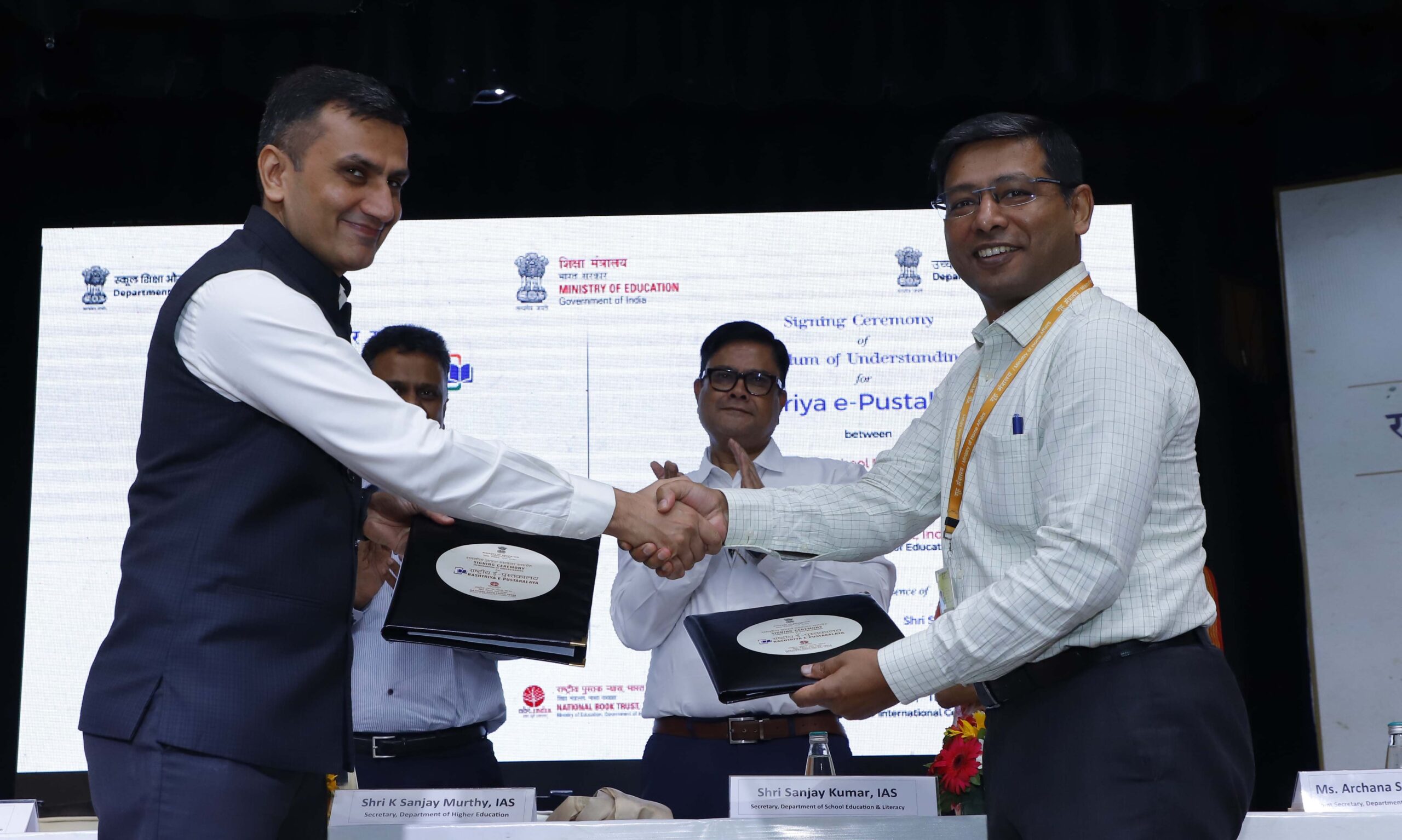 نئی دہلی، سماج نیوز سروس: ڈاکٹر امبیڈکر انٹرنیشنل سینٹرکے آڈیٹوریم میں پروگرام منعقد ہوا۔ایم او یو پر دستخط کی تقریب میں محکمہ ا سکول ایجوکیشن اینڈ لٹریسی،وزارت تعلیم، حکومت ہند کے ذریعہ قومی ای لائبریری کے انتظام کی ذمہ داری نیشنل بک ٹرسٹ، انڈیا کو تفویض کیا گیا۔ تقریب میں محکمہ ہائر ایجوکیشن، ایجوکیشن کےسکریٹری برائے وزارت، حکومت ہند۔ سنجے مورتی، اسکول کی تعلیم اور خواندگی محکمہ تعلیم کے سکریٹری، حکومت ہند سنجے کمار، جوائنٹ سکریٹری ارچنا شرما اوستھی، ڈائریکٹر نیشنل بک ٹرسٹ، انڈیا مسٹر یووراج ملک موجود تھے۔ اسکولی تعلیم اور خواندگی محکمہ کے سکریٹری سنجے کمار نے اپنے بیان میں کہاقارئین کو نیشنل ای لائبریری کے ذریعے کسی بھی وقت اور کہیں بھی کتابیں پڑھنے کی اجازت دیتا ہے کے لیے دستیاب ہوں گے۔ یہ ان بچوں کے لیے بھی ایک اچھا پلیٹ فارم ہے جو لکھنے میں دلچسپی رکھتے ہیں۔