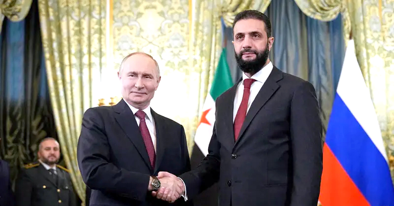 ماسکو: شامی صدر احمد الشرع نے روسی ہم منصب ولادیمیر پوتن سے ماسکو میں ہونے والی پہلی ملاقات میں کہا ہے کہ وہ روس کے ساتھ تعلقات کو ازسرِنو متعین کرنا چاہتے ہیں۔ ڈان نیوز میں شائع خبر رساں ادارے اے ایف پی کی رپورٹ کے مطابق روسی صدر ولادیمیر پوتن نے ٹیلی وژن کیمروں کے سامنے شامی ہم منصب احمد الشرع کا گرمجوشی سے استقبال کیا، تاہم بند دروازوں کے پیچھے ملاقات میں توقع تھی کہ شامی صدر روس سے اپنے پیش رو بشار الاسد کی حوالگی کا مطالبہ کریں گے، جو برطرفی کے بعد وہاں پناہ لیے ہوئے ہیں۔ دونوں رہنماؤں کے درمیان شام میں روس کے فوجی اڈوں، طرطوس کے بحری اڈے اور حمیمیم کے فضائی اڈے کے مستقبل پر بھی بات چیت متوقع تھی، جن کی حیثیت باغیوں کے قبضے کے بعد غیر یقینی ہو چکی ہے۔ روس، شام کی 14 سالہ خانہ جنگی کے دوران، اسد حکومت کا اہم اتحادی رہا اور اس نے فوجی امداد فراہم کرکے ان کی حکومت کو برقرار رکھا، تاہم گزشتہ دسمبر میں احمد الشرع کی قیادت میں شروع ہونے والے حملے کے نتیجے میں اسد اقتدار سے بے دخل ہوئے اور فرار ہوکر روس پہنچ گئے، جہاں وہ گزشتہ 10 ماہ سے اپنے خاندان کے ہمراہ مقیم ہیں۔ ملاقات کے آغاز پر صدر احمد الشرع نے دونوں ممالک کے تاریخی تعلقات کا اعتراف کرتے ہوئے کہا کہ وہ ان روابط کو نئے انداز میں متعین کرنا چاہتے ہیں تاکہ شام کی خودمختاری، وحدتِ ارضی اور سلامتی کو یقینی بنایا جا سکے۔