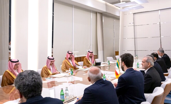 تہران :ایران کے صدر ڈاکٹر مسعود نے بدھ کو قطر کے دارالحکومت دوحہ میں سعودی وزیرخارجہ شہزادہ فیصل بن فرحان کا خیرمقدم کیا ہے۔سرکاری خبر رساں ایجنسی ایس پی اے کے مطابق سعودی وزیر خارجہ نے ایرانی صدر کو سعودی قیادت کی طرف سے تہنیتی پیغام دیا۔ملاقات کے دوران حالیہ علاقائی اور بین الاقوامی صورتحال پر تبادلہ خیال کیا گیا۔اس موقع پر قطر میں سعودی سفیر شہزادہ منصور بن خالد بن فرحان اور وزیر خارجہ کے ڈائریکٹر جنرل عبدالرحمن الداود بھی موجود تھے۔واضح رہے وزیر خارجہ شہزادہ فیصل بن فرحان ایشین کوآپریشن ڈائیلاگ کے تیسرے سربراہی اجلاس میں شرکت کے لیے دوحہ پہنچے ہیں۔ سعودی وزیر خارجہ قطر کے دورے کے دوران خلیج تعاون کونسل( جی سی سی) کے غیرمعمولی اجلاس میں شرکت اور اس موقع پر متعدد ملاقاتیں بھی کریں گے۔ملاقاتوں میں خطے کی حالیہ صورتحال پر تبادلہ خیال کیا جائے گا۔
