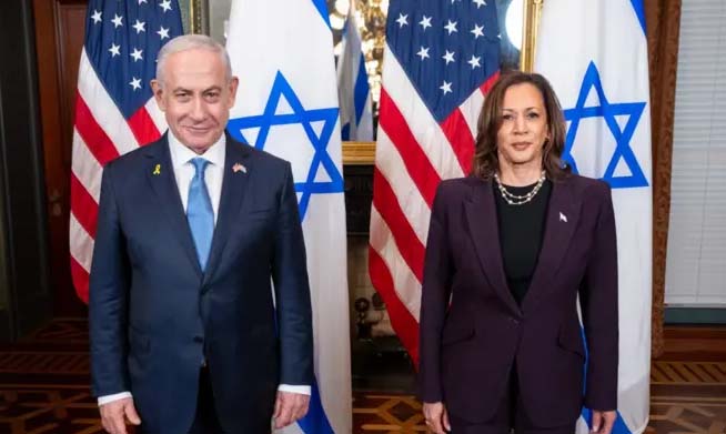کملا ہیرس نے نتن یاہو کے ساتھ 40 منٹ کی ملاقات کے بعد اسرائیل اور اس کے دفاع کے حق کی حمایت کرتے ہوئے کہا کہ اسرائیل کو اپنے دفاع کا حق حاصل ہے۔ تاہم انھوں نے یہ بھی کہا کہ اسرائیل یہ کام کیسے کرتا ہے، یہ بھی اہم ہے۔