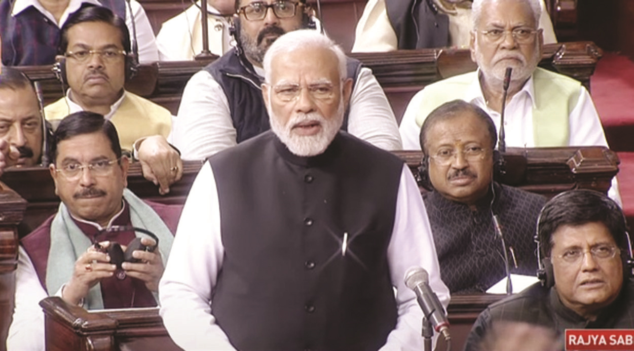 قائد حزب اختلاف ملکارجن کھرگے نے لنچ کے وقفے کے بعد دوپہر دو بجے کارروائی شروع ہونے پر ایوان میں نظم و ضبط کا معاملہ اٹھانا چاہا، لیکن چیئرمین جگدیپ دھنکھر نے اس کی اجازت نہیں دی۔ بعد ازاں انہوں نے وزیراعظم کو بیان دینے کے لیے بلایا۔ مسٹر مودی جیسے ہی تقریر کرنے کے لیے کھڑے ہوئے ، عام آدمی پارٹی، ترنمول کانگریس اور کانگریس کے ارکان ایوان کے بیچ میں آگئے اور نعرے لگانے لگے ۔ اس دوران اپوزیشن کے تمام ارکان اپنی نشستوں کے قریب کھڑے ہوگئے ۔ وزیراعظم کی تقریباً 85منٹ کی تقریر کے دوران اپوزیشن جماعتوں کے ارکان کی جانب سے ایوان میں نعرے بازی اور ہنگامہ آرائی جاری رہی۔ اس دوران حکمران جماعت کی جانب سے کئی بار مودی مودی کے نعرے لگائے گئے۔مسٹر مودی کے جواب کے بعد ایوان نے اپوزیشن ارکان کی ترمیم کو مسترد کرتے ہوئے شکریہ کی تحریک کو صوتی ووٹ سے منظور کر لیا۔وزیر اعظم نے ریاستوں کو بلاامتیاز قرض لینے سے خبردار کیا اور کہا کہ کچھ عرصے بعد ان کی معاشی حالت پڑوسی ممالک جیسی ہو جائے گی۔ انہوں نے کہا کہ ملک کی معاشی صحت سے مت کھیلو۔ ایسا گناہ نہ کریں جس سے آپ کے بچوں کے حقوق سلب ہوں۔ یہ نہ صرف انہیں تباہ کرے گا بلکہ ملک کو بھی تباہ کر دے گا۔انہوں نے کہا کہ آج ملک میں کچھ لوگ معاشی پالیسیوں سے واقف نہیں ہیں ۔ سیاست کا مفہوم نہ سمجھنے والوں نے معاشیات کو ڈیزاسٹر پالیسی میں بدل دیا۔ انہوں نے ایسے لوگوں کو خبردار کیا کہ وہ اپنی اپنی ریاستوں کو سمجھائیں کہ وہ غلط راستے پر نہ چلیں۔ انہوں نے کہا کہ ہم اپنے پڑوسی ممالک کی حالت دیکھ رہے ہیں کہ کیا صورتحال ہے ۔ غیر ضروری قرضے لے کر کیسے ملکوں کو ڈبو دیا گیا۔ ہمارے ملک میں بھی اگر فوری فائدے کے لیے ادائیگی کی جائے تو اس کا اثر آنے والی نسلوں پر پڑے گا۔ قرض لینے اور گھی پینے کا کھیل دیکھا جائے گا۔ انہوں نے کہا کہ ایک وزیر اعلیٰ نے بیان دیا کہ ‘‘میں فیصلہ کر لوں تو ٹھیک ہے ، اب مجھ پر مصیبت کہاں آئے گی۔ مصیبت 2032کے بعد آئے گی۔ انہوں نے سوال کیا کہ کیا ملک ایسے چلتا ہے ؟ یہ رجحان بنتا جا رہا ہے جو کہ انتہائی تشویشناک ہے ۔ نظم و ضبط کے راستے کا انتخاب کرنا ہوگا۔ تب ہی تمام ریاستیں ترقی کے سفر کا فائدہ اٹھا سکیں گی۔ ملک دیکھ رہا ہے کہ ایک شخص کتنا بھاری پڑ رہا ہے ۔ سیاسی کھیل کھیلنے والے یہ لوگ فرار کا راستہ تلاش کر رہے ہیں۔ ملک ایک لمبی چھلانگ لگانے کو تیار ہے ۔