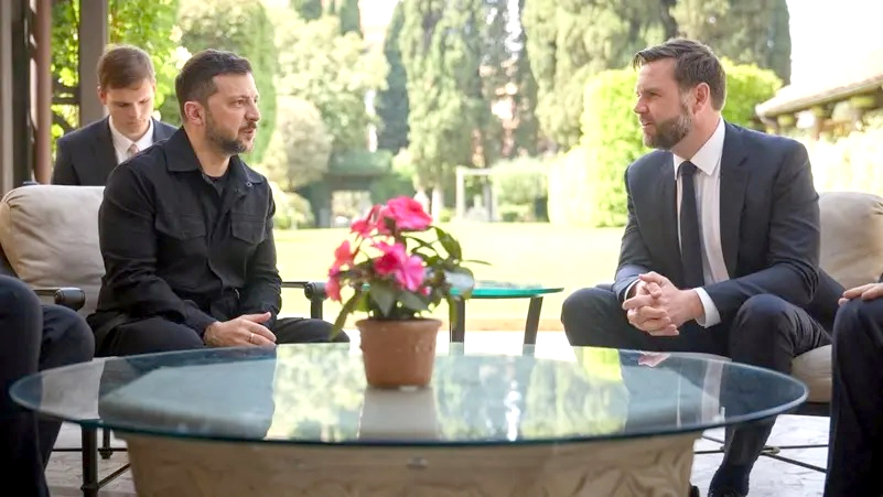 واشنگٹن(ہ س)۔امریکی نائب صدر جے ڈی وینس اور وزیر خارجہ مارکو روبیو نے وائٹ ہاؤس میں مشہور جھگڑے کے بعد پہلی بار روم میں یوکرینی صدر ولادیمیر زیلنسکی سے ملاقات کی۔زیلنسکی نے اعلان کیا ہے کہ انہوں نے استنبول مذاکرات پر تبادلہ خیال کیا جہاں روسیوں نے ایک نچلے درجے کا وفد بھیجا جس کے پاس فیصلہ کرنے کا اختیار نہیں تھا۔ انہوں نے ’’ ایکس‘‘ کے ذریعے وضاحت کی کہ امریکی حکام کے ساتھ ملاقات کے دوران انہوں نے حقیقی سفارت کاری کے لیے یوکرین کی آمادگی پر زور دیا اور جلد از جلد مکمل اور غیر مشروط جنگ بندی کی اہمیت پر زور دیا۔وینس اور روبیو نے یہ بھی کہا ہے کہ ملاقات میں روس پر پابندیاں لگانے، دو طرفہ تجارت، دفاعی تعاون، میدان جنگ کی صورتحال اور مستقبل میں قیدیوں کے تبادلے کی ضرورت پر تبادلہ خیال کیا گیا۔انہوں نے کہا روس پر اس وقت تک دباؤ جاری رہنا چاہیے جب تک کہ وہ جنگ روکنے کے لیے تیار نہ ہو جائے۔ انہوں نے یہ بھی واضح کیا کہ انہوں نے منصفانہ اور پائیدار امن کے حصول کے لیے مشترکہ اقدامات پر تبادلہ خیال کیا۔یہ بیانات اس وقت آئے ہیں جب امریکی نائب صدر جے ڈی وینس کی پریس ٹیم کے صحافیوں نے ان کے نمائندے کے حوالے سے اعلان کیا تھا کہ وہ اور وزیر خارجہ مارکو روبیو یوکرینی صدر ولادیمیر زیلنسکی سے ملاقات کریں گے۔انہوں نے اشارہ کیا کہ یہ ملاقات اٹلی میں امریکی سفیر کی رہائش گاہ پر بند دروازوں کے پیچھے ہو رہی ہے اور زیلنسکی کے دفتر کے ڈائریکٹر اینڈری یرماک بھی اس میں شرکت کریں گے۔یاد رہے کہ زیلنسکی نے 28 فروری کو وائٹ ہاؤس میں ٹرمپ سے ملاقات کی تھی۔ ان کے درمیان زبانی جھگڑا ہوگیا تھا جس کے دوران امریکی صدر اور ان کے نائب جے ڈی وینس نے زیلنسکی پر احسان فراموشی اور عدم احترام کا الزام لگایا تھا۔