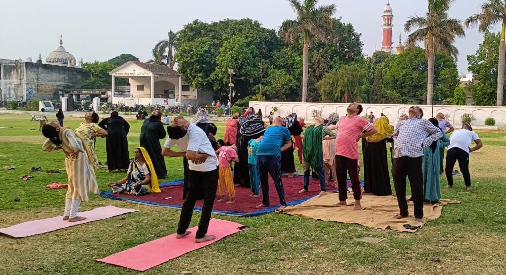 رام پور،22؍ مئی،سماج نیوز سروس: علاقائی آیورویدک اور یونانی افسر ڈاکٹر پش پیندر سنگھ چوہان کے احکامات پر یوگا کے انسٹرکٹر راجیو کمار اور ہیلتھ ویلنس سینٹررام پورکی ارچناگپتا کے ذریعہ قلعہ کے میدان میں روزانہ یوگا کی ٹرینگ کی جارہی ہیں۔یوگا کیمپ بدھ کی صبح6 بجے سے شروع ہوا۔ورزشوں کے ساتھ ساتھ، تاداسن، ورکشاسنا، میورسن، سکنڈ چکر، سروائیکل موومنٹ، اردھا چکراسنا، مندوکاسنا، وجراسنا، گومکھ آسن اور پرانائم کریں۔یوگاچاریہ راجیو کمار نے کہا کہ منڈوکاسنا اور وکراسنا 15 منٹ تک باقاعدگی سے کرنے سے شوگر لیول ٹھیک رہتا ہے۔ اس کے ساتھ 15 منٹ تک پرانایام کرنے سے آکسیجن کی سطح بڑھ جاتی ہے۔ انہوں نے کہا کہ یوگا کو اپنے روزمرہ کے معمولات میں لازمی بنائیں اور اپنے اردگرد کے لوگوں کو بھی یوگا کرنے کے لئے آگاہ کریں۔ صحت مند رہنے کے لئے صبح سویرے اٹھیں اور کسی میدان یا پارک میں چہل قدمی کریں اور پھر یوگا کی مشق کریں۔