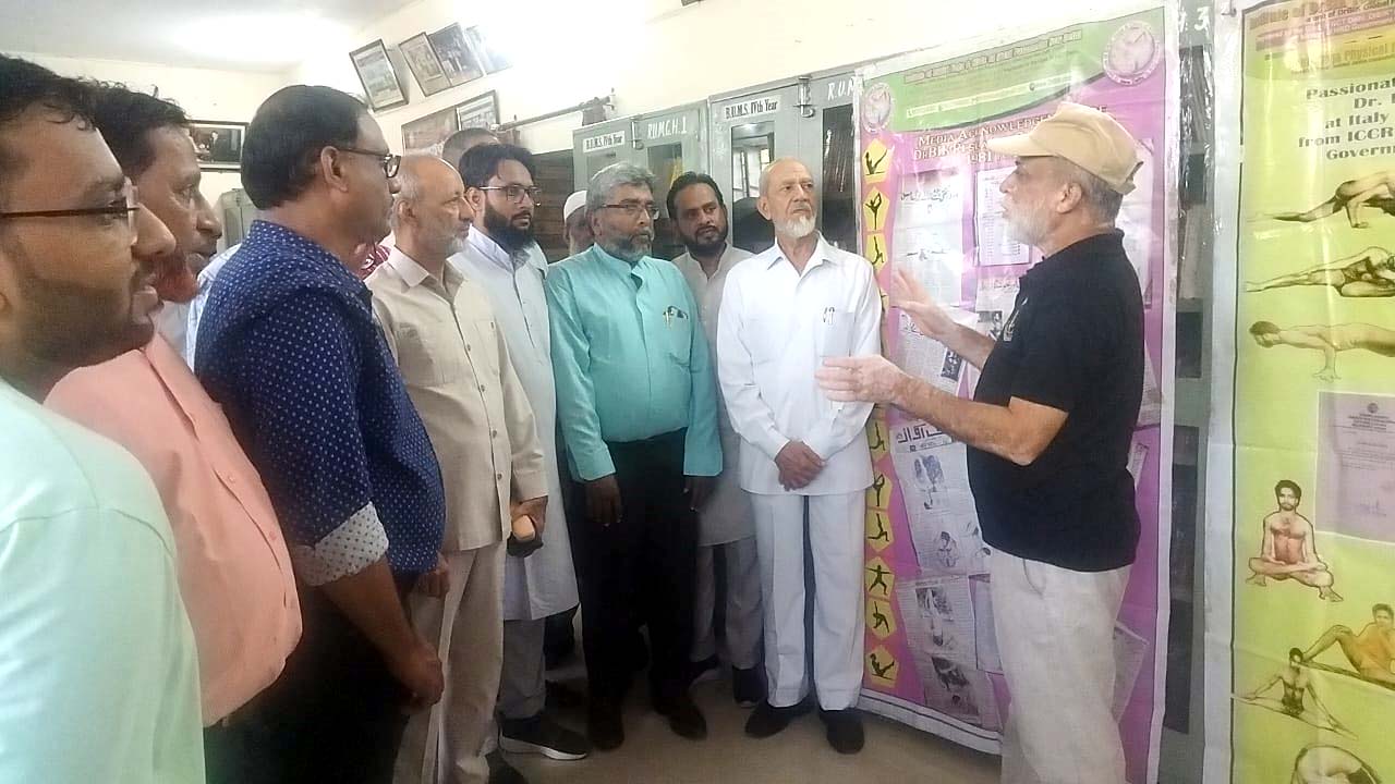 نئی دہلی؍جے پور،سماج نیوز سروس:ملک کے نامی گرامی، معروف یونانی فزیشنز کی تنظیم، آل انڈیا یونانی طبی کانگرس کے سیکرٹری جنرل نے خیرخواہ اِنسانیت حکیموں کے تعاون سے امراض کی جڑ سے کاٹ کرنے والی دیسی دواؤں اور ڈربک طبی ورزشوں کی دو دھاری تلوار چلانے والے اعلی ہنرمند حکیم تیار کرنے کے پائیدار مقصد سے راجستھان یونانی میڈیکل کالج اینڈ ہاسپٹل جے پور میں ڈربک منتخبہ طبی ریاضتوں کی ورکشاپ کا افتتاح فرمایا. ورکشاپ کے کنوینر پروفیسر سید عبد المجیب نے پرنسپل پروفیسر ایم۔ اعظم انصاری، ڈاکٹر پرویز اختر وارثی، پروفیسر ضیاء الاسلام کے ساتھ مل کر ڈربک منتخبہ طبی ریاضتوں کی نمائش کا افتتاح فرمایا. ریکس ریمیڈیز لمٹیڈ کے تعاون سے مفت یونانی میڈیکل کیمپ کے موقع کا فائدہ اٹھاتے ہوئے، آل انڈیا یونانی طبی کانگرس راجستھان اسٹیٹ کے سیکرٹری جنرل ڈاکٹر سید عبد المجیب نے سیکھو اور سکھاؤ دیش کو صحتمندی کے میدان میں ترقی یافتہ اور قابل فخر بناؤ اور دنیا جہاں کو خیر والی ہنرمندی سے نفع دلاؤ والی اطباء اور حکماء ہند کی مشترکہ سوچ کے ساتھ، دگر ماہرین طب کے تعاون سے، ڈاکٹر حضرات اور پیرا میڈیکل سائنس کے اساتذہ اور طلباء کے لئے علاج بالتدبیر (نیچرو پیتھی) اینڈ یوگا ریاضت کی خصوصی سی.ایم.ای. کا اہتمام فرمایا. اس سی.ایم.ای. میں طب یونانی کے نوجوان طلبا نے ڈاکٹر نسیم علی، ایونٹ مینیجر کوثر جے پوری اور وجیہہ جے پوری کے ساتھ خصوصی دلچسپی سے ڈربک منتخبہ طبی ریاضتوں کے رموز ذہن نشیں کئے اور ان ریاضتوں کی ماہر میڈم کوثر دہلوی کی زیر نگرانی چار سو مریضوں کو حسب ضرورت مشقوں سے فائدہ دلایا. آپ کو یہ جان کر خوشی ہوگی کہ خاندانی یونانی حکیم ڈاکٹر بدرالاسلام کیرانوی نے اپنی پچاس سالہ تحقیق و ترویج کی مسلسل جفاکشی سے تیار، حیران کُن نفع بخش ریاضتوں کو حکومت ہند کے 50 ہزار اساتذہ، 10 لاکھ والنٹئر اور ٣٥ لاکھ سے زائد نوجوانوں کو سن 2012 تک بحیثیت بھارت سرکار کے ٹریننگ کمشنر مفت سکھوایا اور اب اس علاج بالتدبیر (نیچرو پیتھی) اینڈ یوگا ریاضت کی خصوصی سی.ایم.ای کے دوران، مزید آب و تاب کے ساتھ، اپنی حیران کُن افادیت سے مالامال اور دنیا جہاں میں بے شمار مقبولیت حاصل کرنے والی ان پیرا میڈیکل سائیکو فزیوتھیراپی نیچر والی ایکسرسائز کا اپڈیٹڈ ورزن مفت پیش کیا ہے.