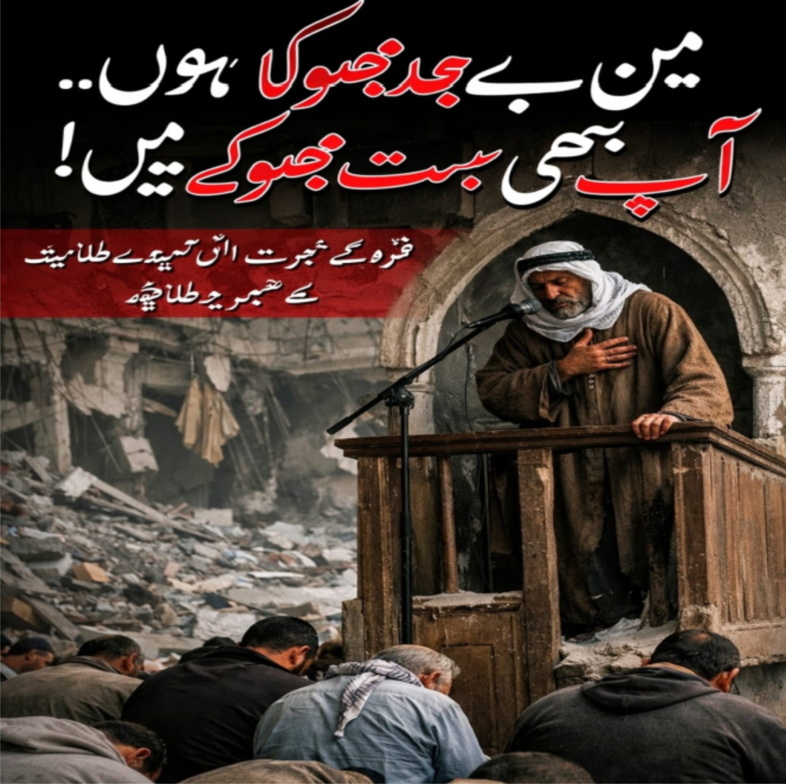یہ صرف ایک خطبہ نہیں تھا… یہ انسانیت کے سینے پر رکھا ہوا ایک سوال تھا، ایک ایسا سوال جس کا جواب آج تک دنیا کے کسی ایوان، کسی پارلیمنٹ، کسی محل اور کسی تخت سے نہیں آیا۔غزہ کی اس بستی میں وہ جمعہ بھی آیا… مگر وہ عام جمعہ نہیں تھا۔ وہاں نہ خطبے کی طوالت تھی، نہ الفاظ کی گھن گرج، نہ فقہی نکات کی باریکیاں۔ وہاں صرف بھوک تھی… ایسی بھوک جو آواز کو نگل جائے، جسم کو توڑ دے اور روح کو لرزا دے۔امام ممبر پر کھڑا ہوا… مگر اس کے الفاظ اس کے ساتھ نہ دے سکے۔ اس نے صرف اتنا کہا: “میں بے حد بھوکا ہوں… مجھ میں بولنے کی قوت نہیں… آپ بھی بہت بھوکے ہیں… آپ میں سننے کی تاب نہیں… آئیے جماعت کھڑی کرتے ہیں۔”یہ چند جملے نہیں تھے… یہ پوری امت مسلمہ کے ضمیر پر ایک طمانچہ تھے۔یہ خطبہ اس دنیا کے منہ پر ایک زوردار تھپڑ تھا جو خود کو مہذب کہتی ہے، انسانی حقوق کی دعویدار ہے، اور ہر فورم پر انصاف کے نعرے لگاتی ہے۔ کہاں گئے وہ ادارے؟ کہاں گئی وہ قراردادیں؟ کہاں ہیں وہ آنسو جو صرف تقریروں میں بہتے ہیں؟یہ خطبہ صرف اسرائیلی بمباری کا نوحہ نہیں تھا… یہ مسلم حکمرانوں کی خاموشی کا ماتم تھا۔56 اسلامی ممالک… کروڑوں مسلمانوں کے نمائندے… مگر ایک بھوکے امام کے پاس نہ الفاظ تھے، نہ طاقت، نہ امید۔ اس کے سامنے صرف بھوکی صفیں تھیں… ایسے نمازی جو روٹی کے ایک ٹکڑے کو ترس رہے تھے، مگر پھر بھی اپنے رب کے سامنے کھڑے ہونے کی ہمت رکھتے تھے۔یہ منظر ہمیں جھنجھوڑتا ہے کہ کیا ہماری عبادتیں بھی اب صرف رسم رہ گئی ہیں؟ کیا ہماری غیرت بھی بیانات تک محدود ہو چکی ہیں ؟ کیا ہماری امت صرف تعداد کا نام رہ گئی ہے؟غزہ کا وہ امام جب کہتا ہے “آئیے جماعت کھڑی کرتے ہیں”، تو وہ دراصل پوری دنیا کو یہ پیغام دے رہا ہوتا ہے کہ ہم بھوکے ہیں… کمزور ہیں… بے بس ہیں… مگر ہم ٹوٹے نہیں ہیں۔یہی وہ لمحہ ہے جہاں غزہ مادی طاقت سے ہار کر بھی اخلاقی بلندی پر کھڑا نظر آتا ہے، اور باقی دنیا طاقتور ہو کر بھی اخلاقی طور پر شکست کھا جاتی ہے۔یہ خطبہ تاریخ میں محفوظ ہو چکا ہے… نہ اس لیے کہ وہ مختصر تھا، بلکہ اس لیے کہ اس نے لمبی لمبی تقریروں، قراردادوں اور دعووں کی حقیقت کھول دی۔آج سوال صرف غزہ کا نہیں… سوال یہ ہے کہ ہم کہاں کھڑے ہیں؟اگر ایک بھوکا امام اپنی کمزوری میں بھی سچ بول سکتا ہے، تو کیا ہم اپنی آسائشوں میں بھی سچ سننے کی ہمت رکھتے ہیں؟